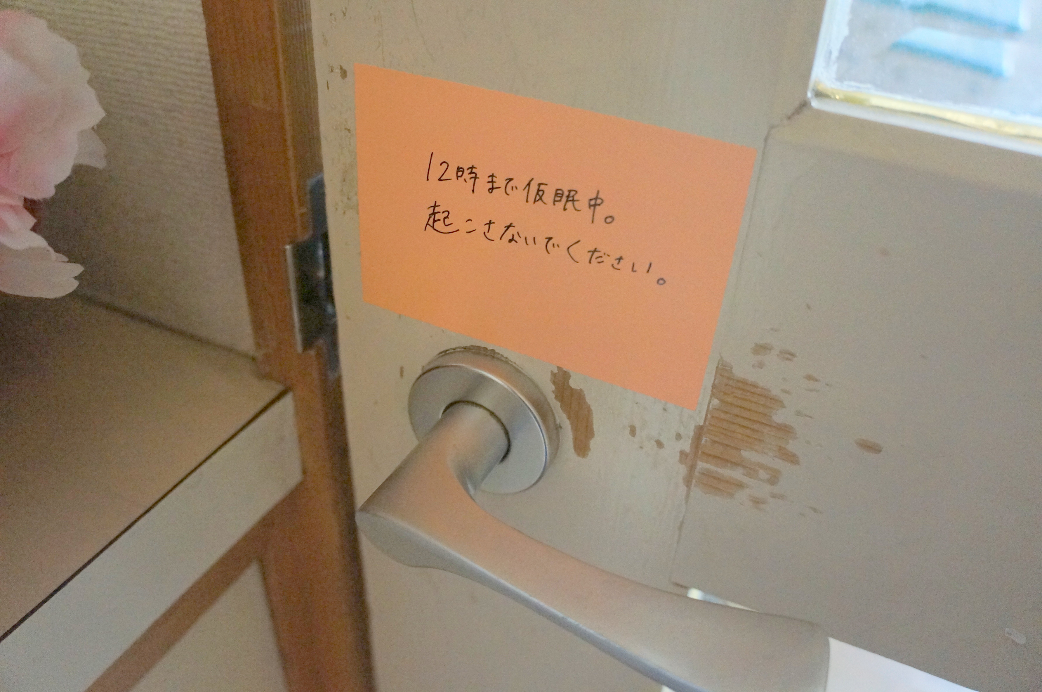 ちょっとしたアイデアや伝言を書き込み、気軽に貼り付けられる「マグネティックノート」。この手軽さを利用して、注意書きを記した“ガイド”を簡単に作れます。たとえば、仮眠を取っている部屋のドアに「起こさないでください」といったメモを貼れば、ドアサインとして使えます。