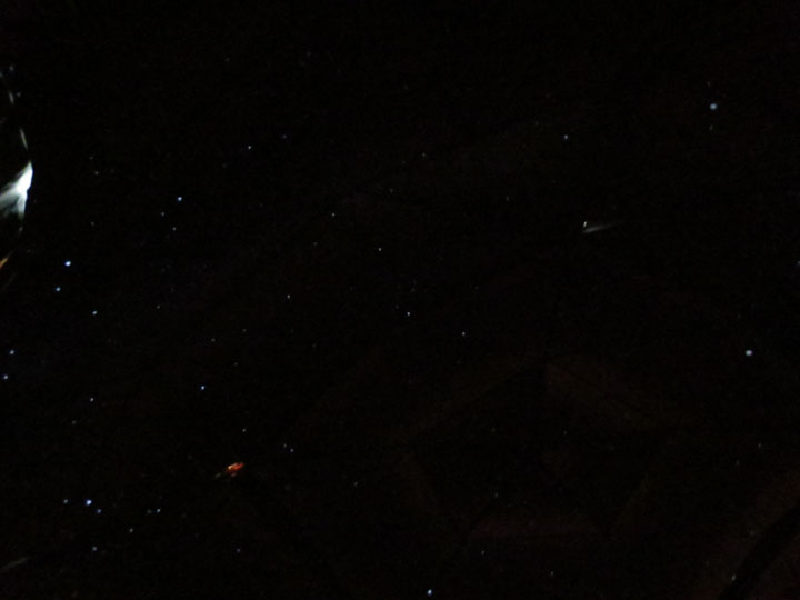ドーム内中央にはプラネタリウムの機材が。それにしても明るい