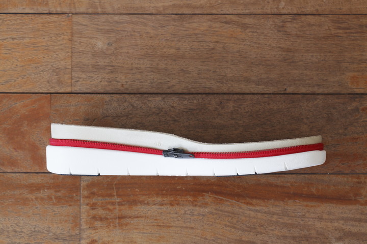 ▲アッパーとソールの曲線がピッタリ一致しているので、ファスナーはスムーズに動きます