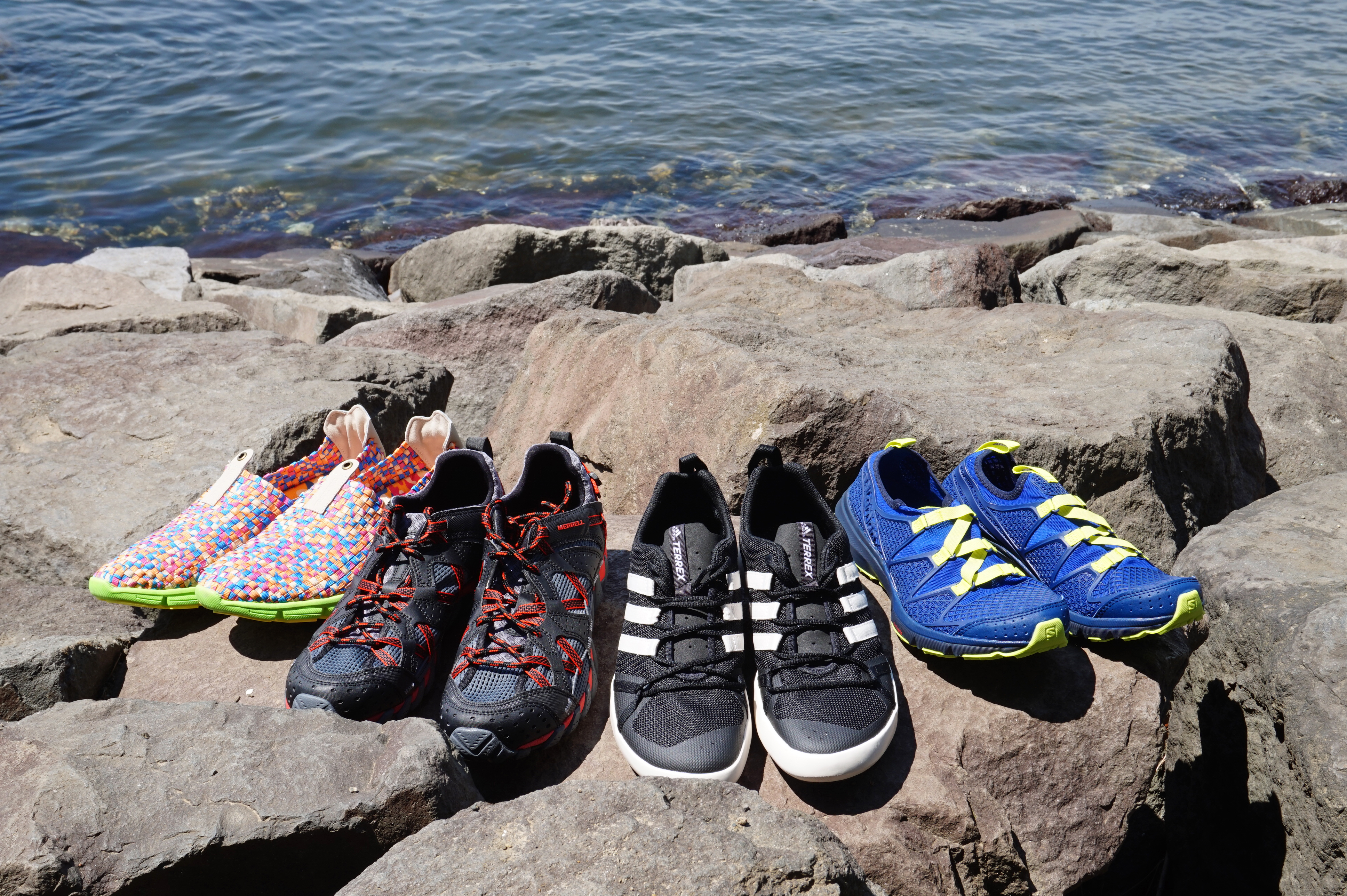 水陸両用のハイブリットシューズ4足を見てきましたが、共通するのは速乾性や排水性の良さ、そしてアウトソールのグリップ力。どのシューズも水の中に入っても濡れても全く問題ないので、決め手は見た目か、他の機能がカギとなりそうですね。あと、意外と違うのが履き心地。履いてみると使用感がそれぞれ全く違うので、購入する際はぜひ何足か履き比べてみてくださいね!