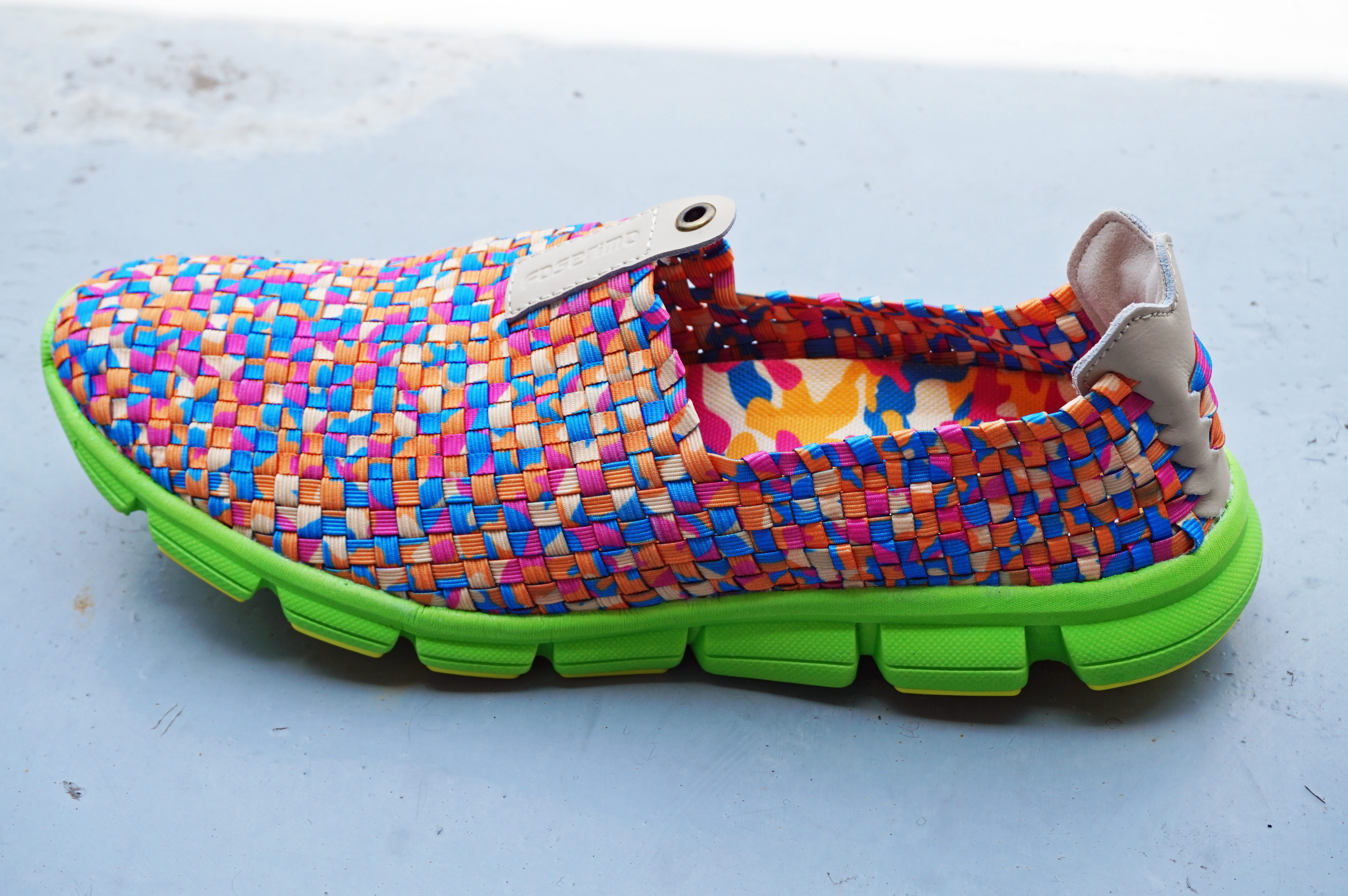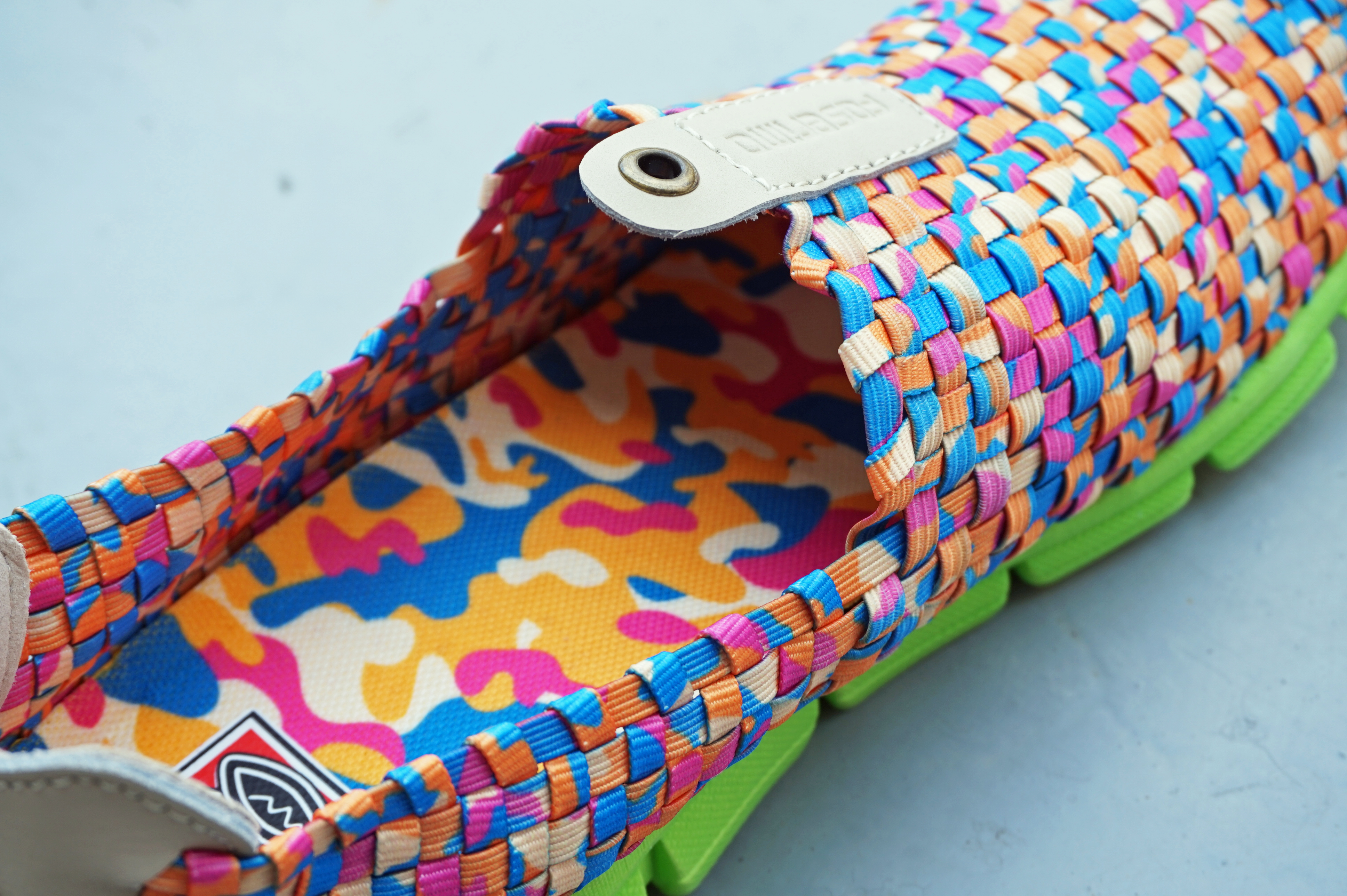 このマーブルカラーで編み込まれたカモフラ柄のウーブンスニーカーは、ピンクやオレンジなど華やかな色使いが特長。足元の差し色効果で着こなしの完成度をアップしてくれます。カーキやグレーなどのシックなカラーもあるので、落ち着いたムードに仕上げたい人はこちらのカラーを。