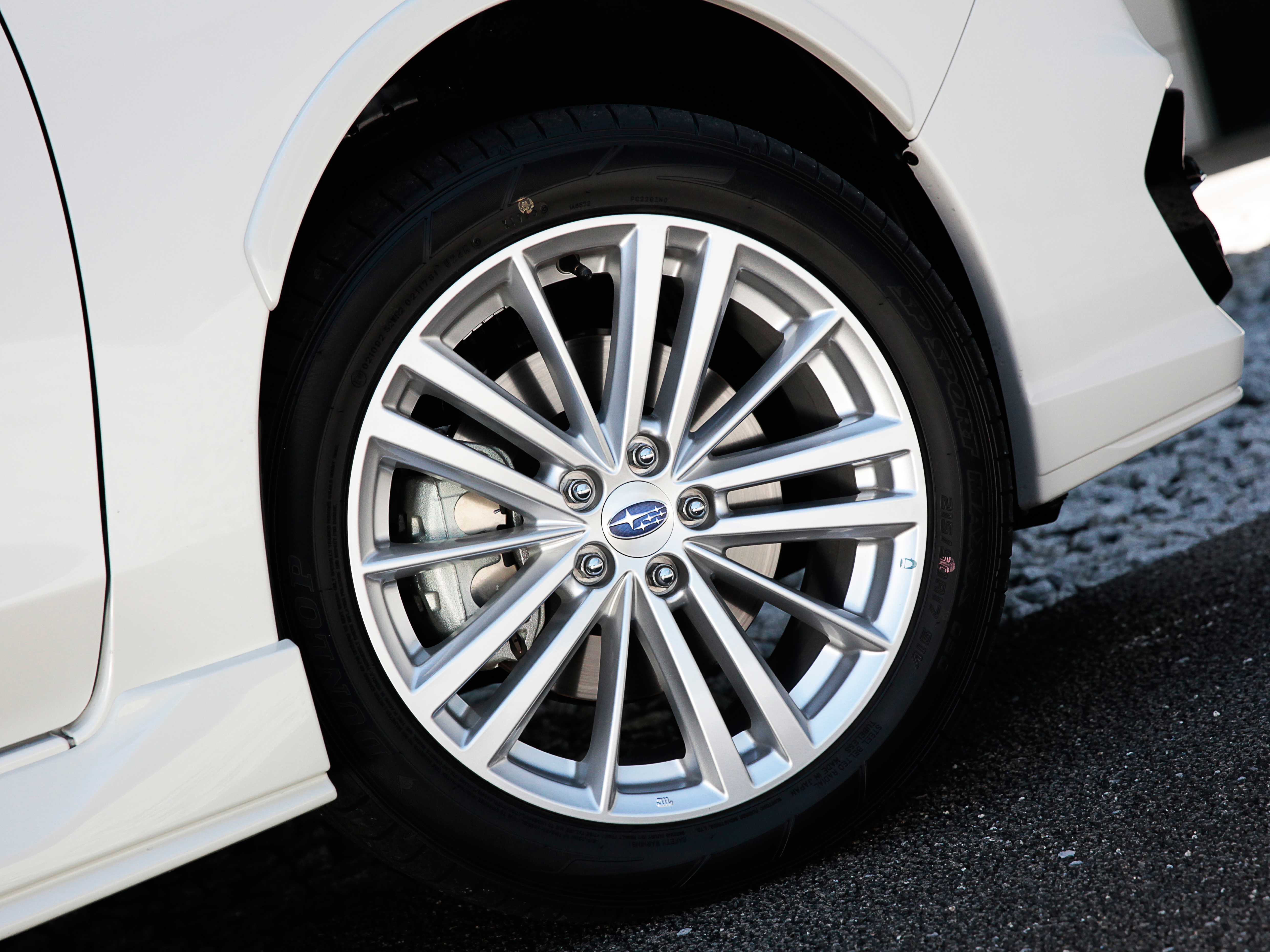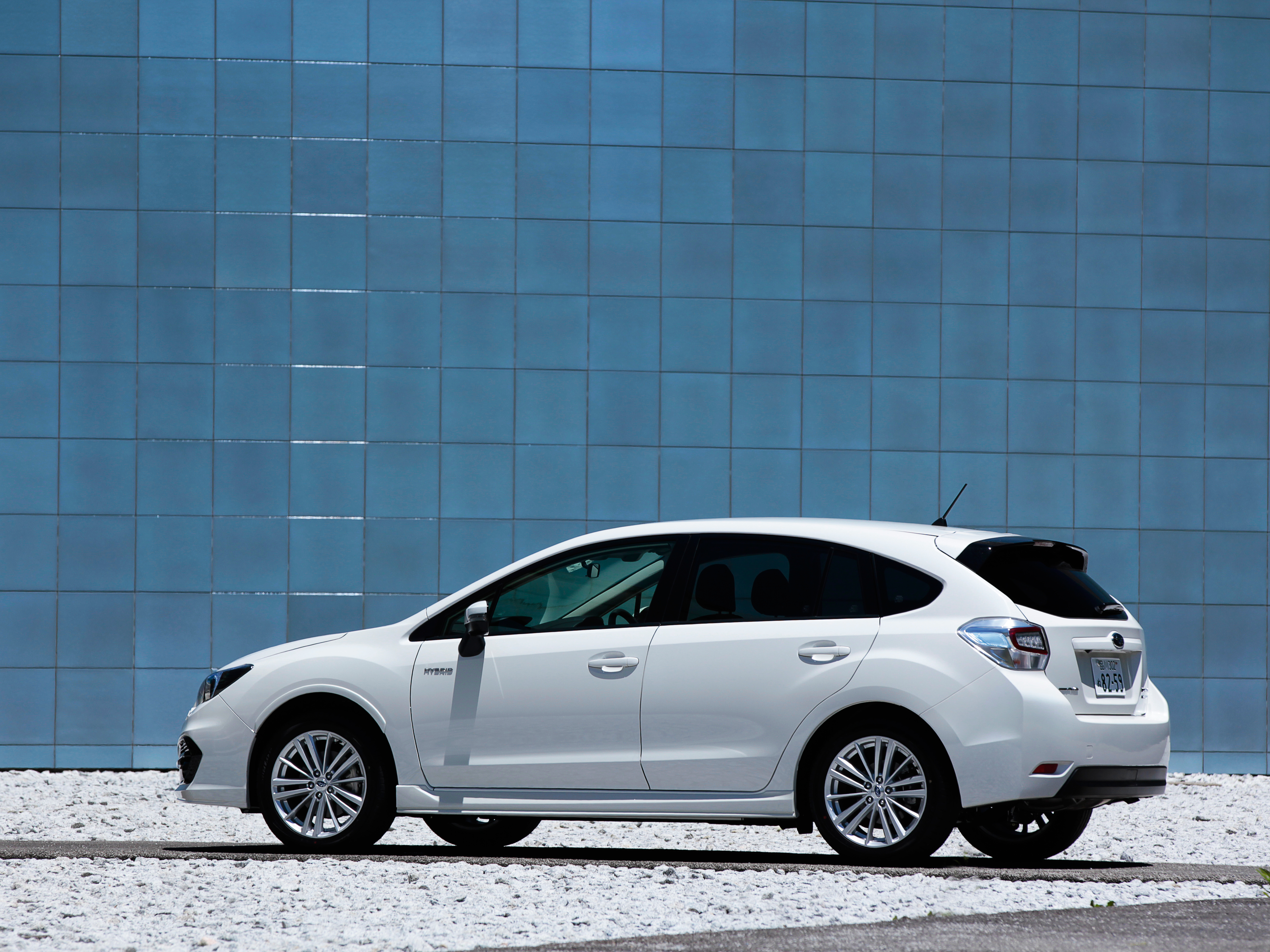 専用のフロントバンパーとサイドシル、それに、ルーフエンドスポイラーが与えられたインプレッサスポーツ ハイブリッド。前後左右に控えめなスカートが付いて、空力の良さが視覚的に強調されます。