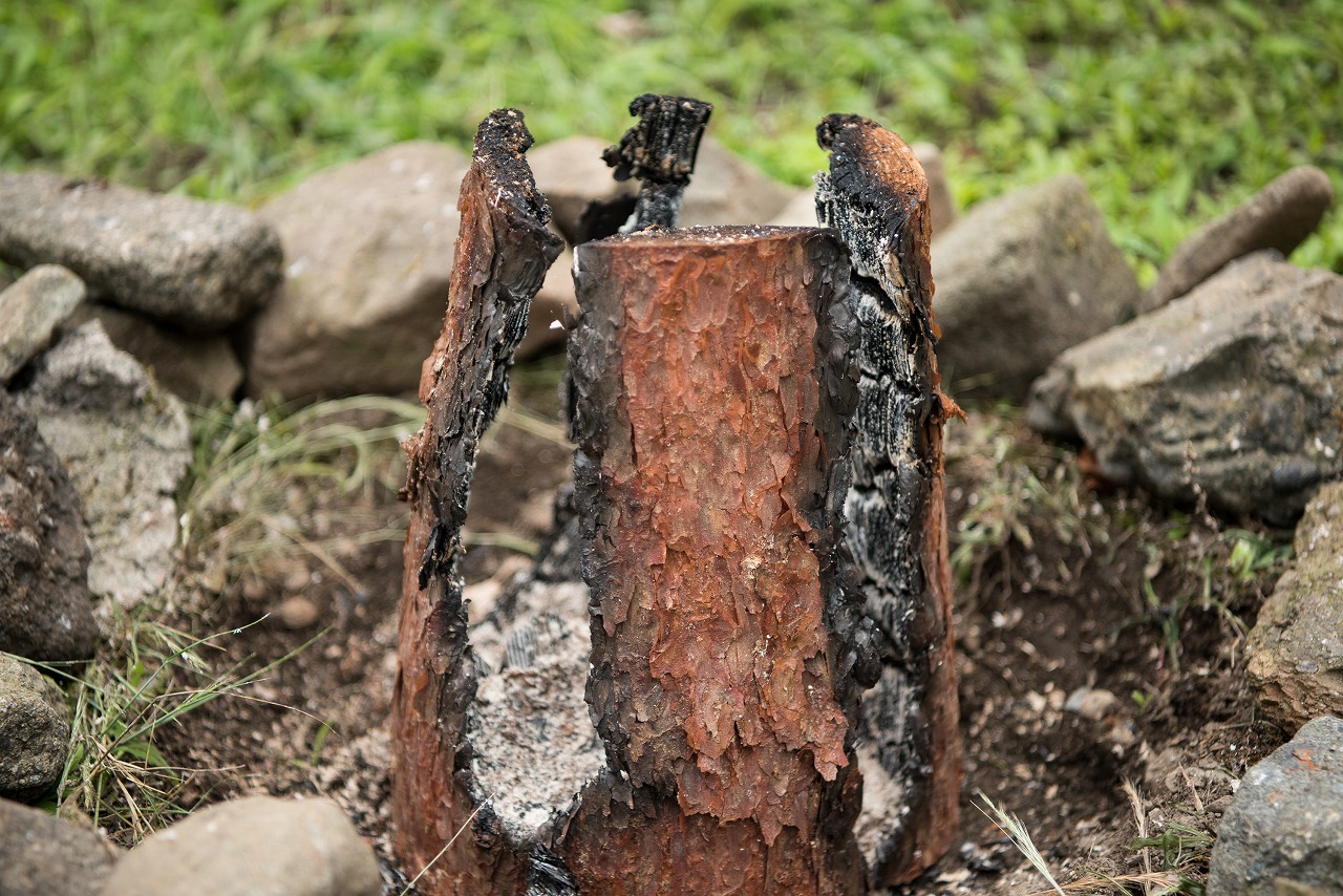 さて、3、4時間が経ちました。丸太の底や、樹皮の部分を残して燃え尽きたようです。翌日、改めて確認してみると、見事に内部だけが焼けています。
