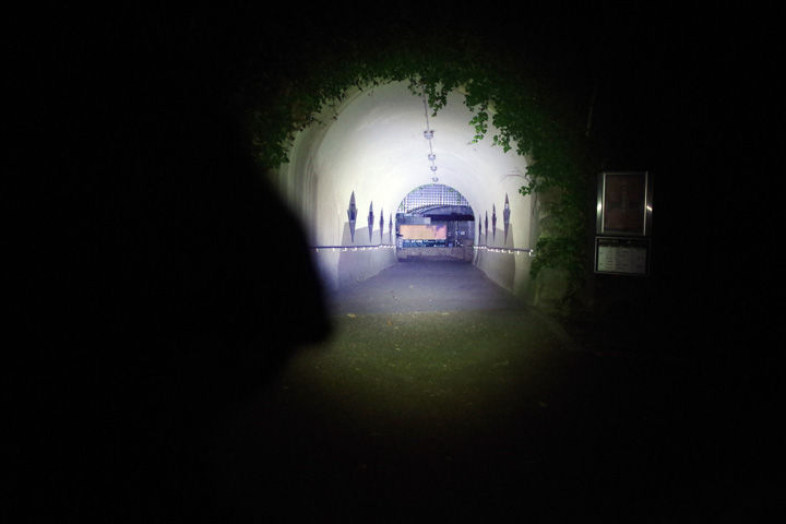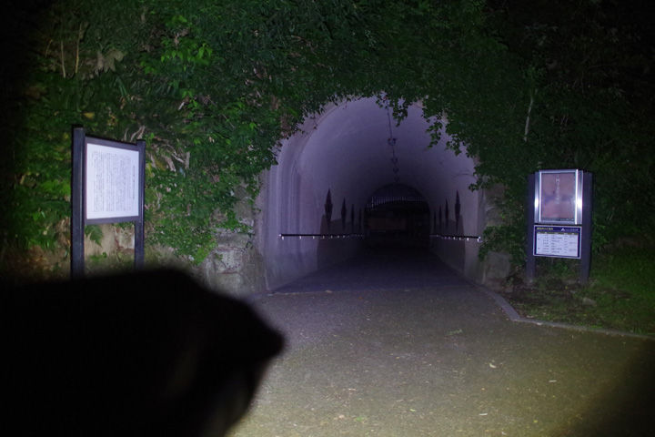 次に照明のないトンネル内を照射。そんなに長くは無いトンネルですがワイドとズームの違いが良く分かるかと思います。