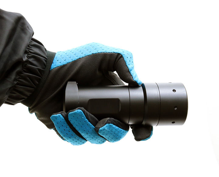 ライトの握り方ですが、一般的にこのライトであれば上のように親指でスイッチボタンを押すことになると思っていましたが、実際に使うと違う握り方もアリだな…と思いました。そもそも4AA(単三電池4本)をドラム状に並べたライトの場合、ボディが太くなり、上記のような持ち方だとスイッチが少し押し難いように感じました。