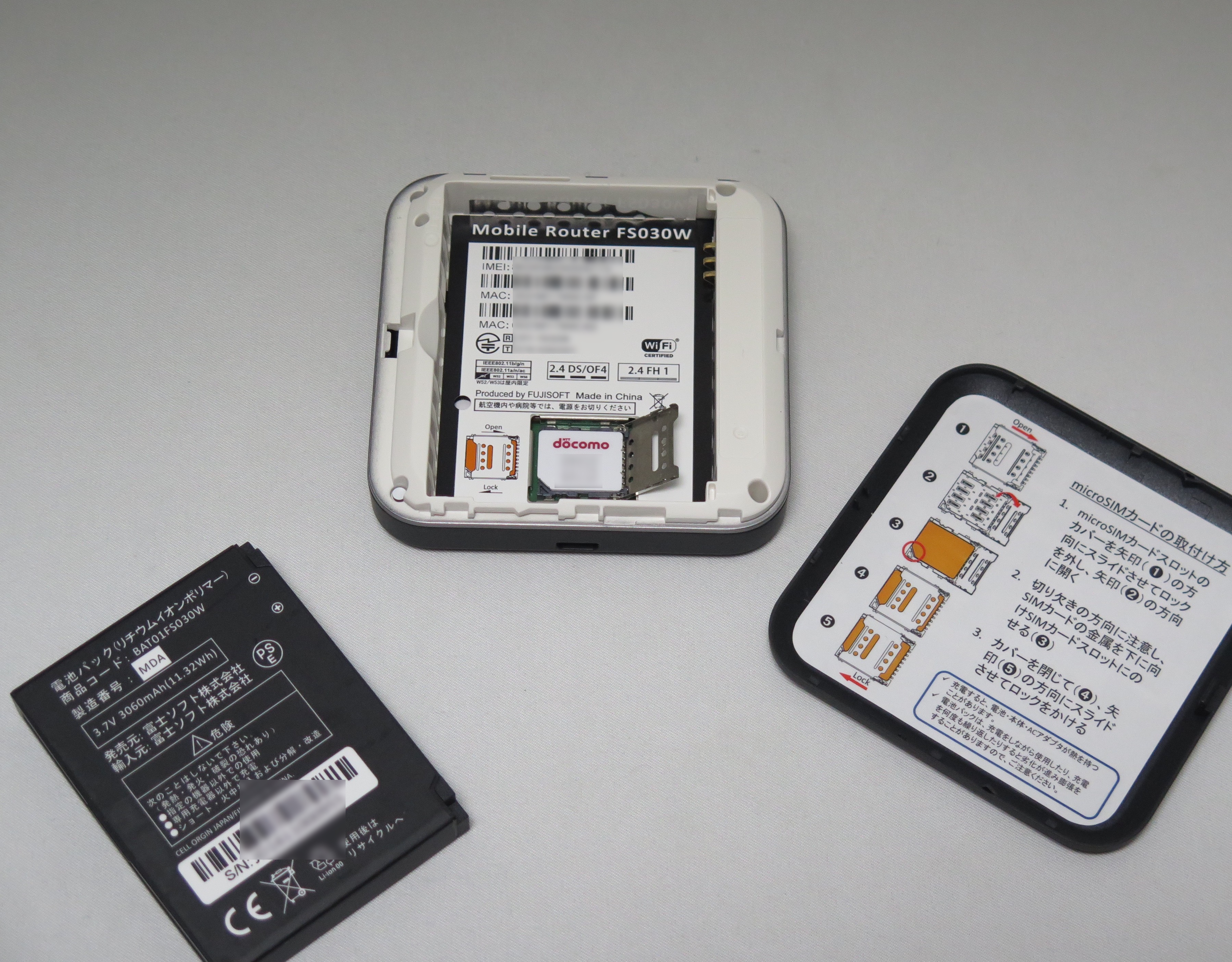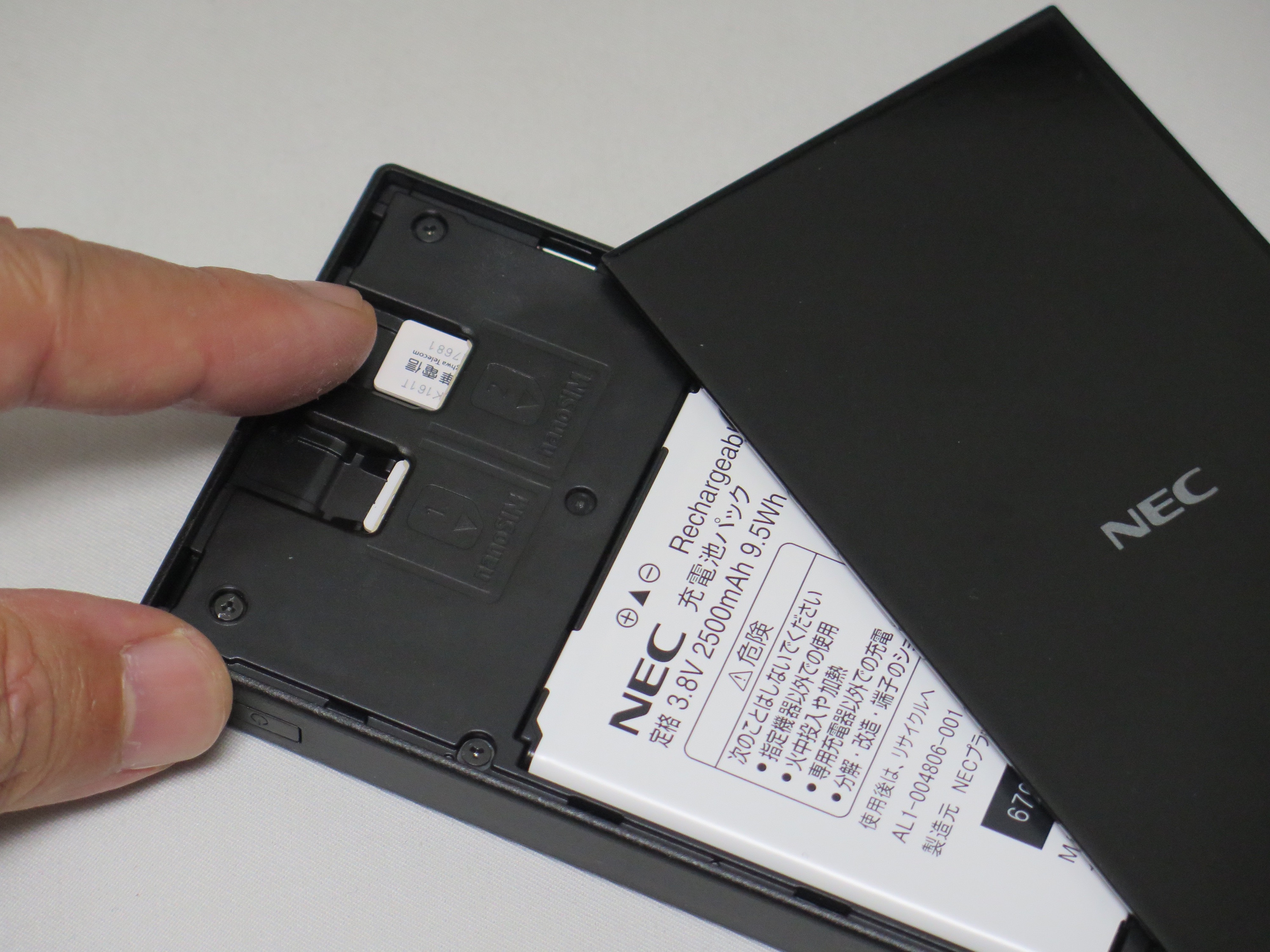 ▲電池パックを取り外してmicroSIMを装着。装着方法もわかりやすく記されている
