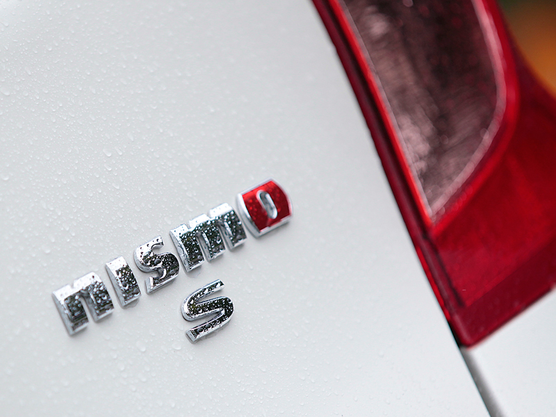 ひと目でNISMOと分かるスポーティな外観に、クイックシフトの専用ギヤレバー(ジュラコン製シフトノブ)、強化エンジンマウント、フロントストラットタワーバーほか各種専用パーツを装着。エンジンのパワーアップに合わせて、S-tuneブレーキパッド(前)を奢ってストッピングパワーも強化されています。