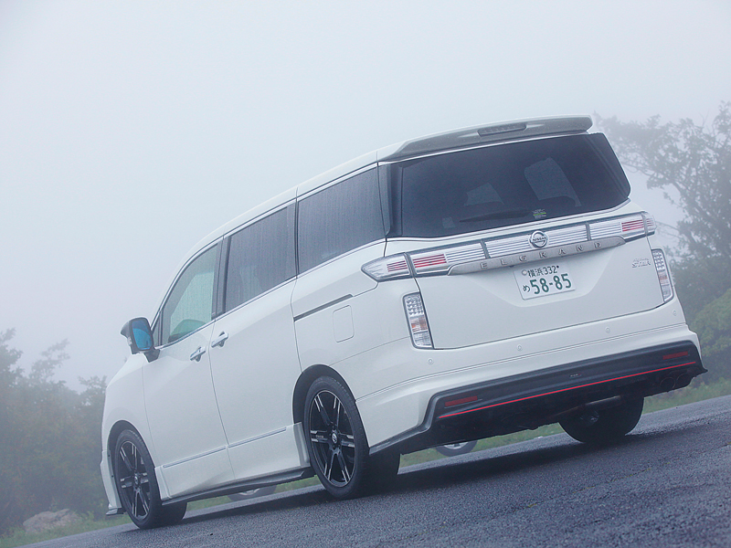 “350ハイウェイスター”をベースに、スーパーGTのレースカーを手掛けるエンジニアが開発した、本格的な空力パーツを装着。足回りもリセッティングされており、快適性を損なわず、それでいてミニバンらしからぬしっかりした走りを披露します。