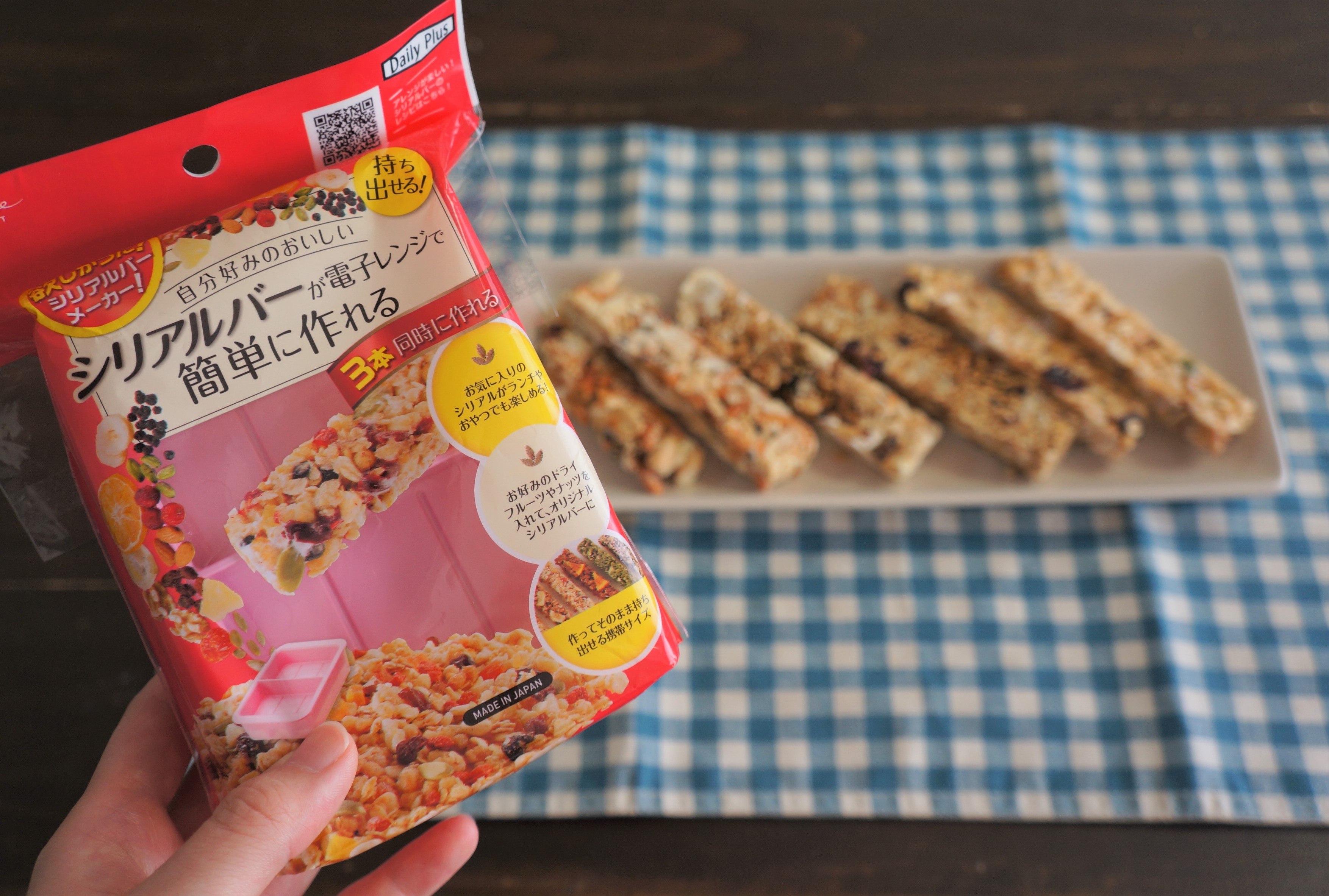 材料を本体に入れて、電子レンジで約1分。溶けた材料をスプーンで混ぜて冷蔵庫で冷やせば3本のシリアルバーが完成します。毎回コンビニでシリアルバーを買うよりも経済的で、アレンジすれば自分好みの味にできる楽しさもあります。
