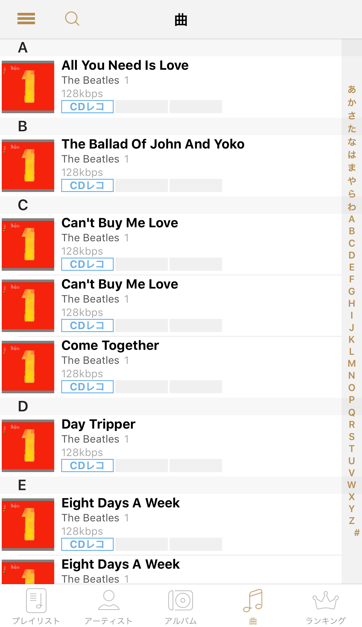 取りこんだ楽曲は、アーティスト/アルバム/曲のリストからそれぞれ確認できます。
