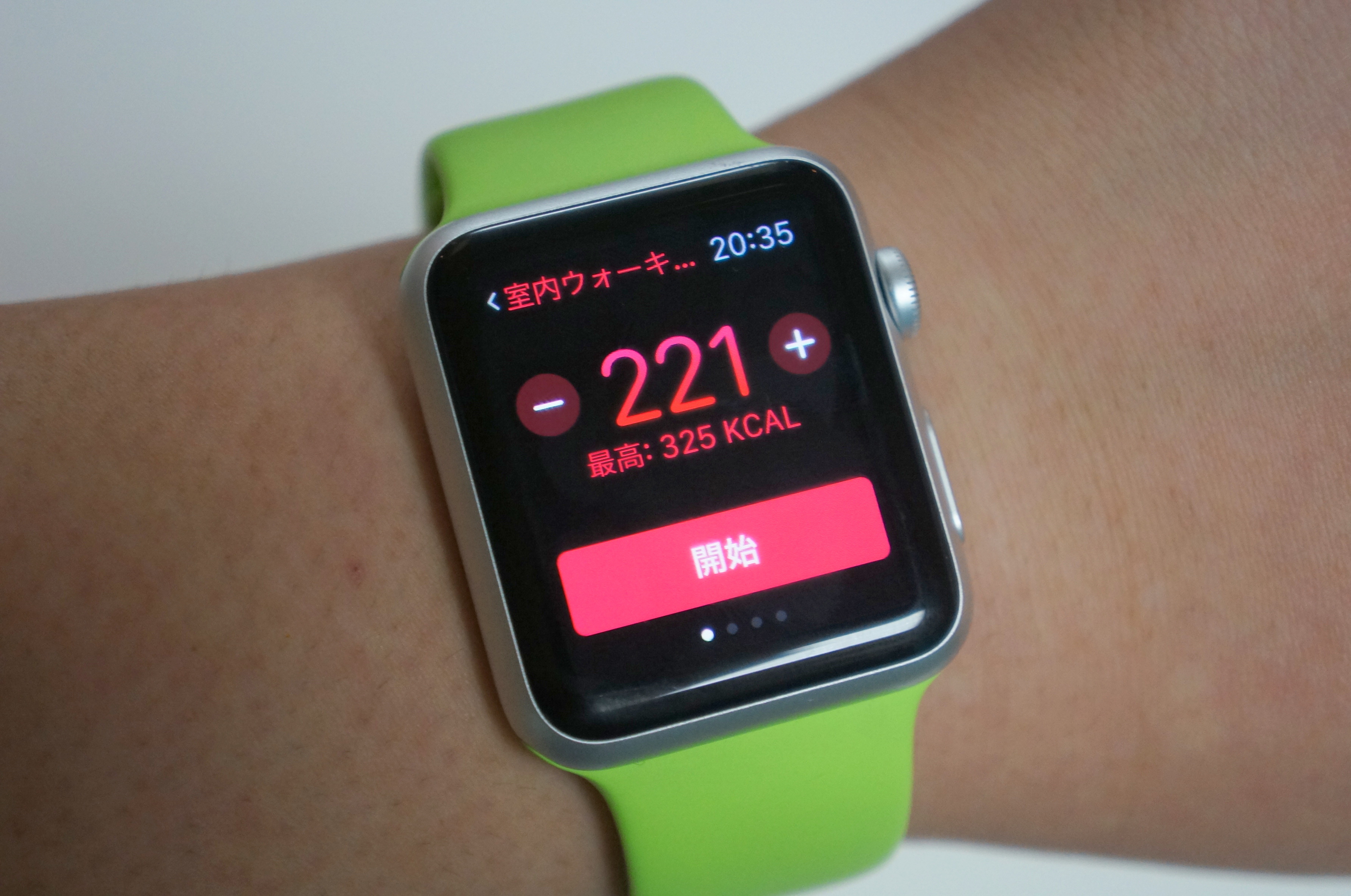 ウォーキングやランニングの場合、消費カロリー、時間、距離などのゴール値を設定し、「開始」ボタンを押せば計測開始。