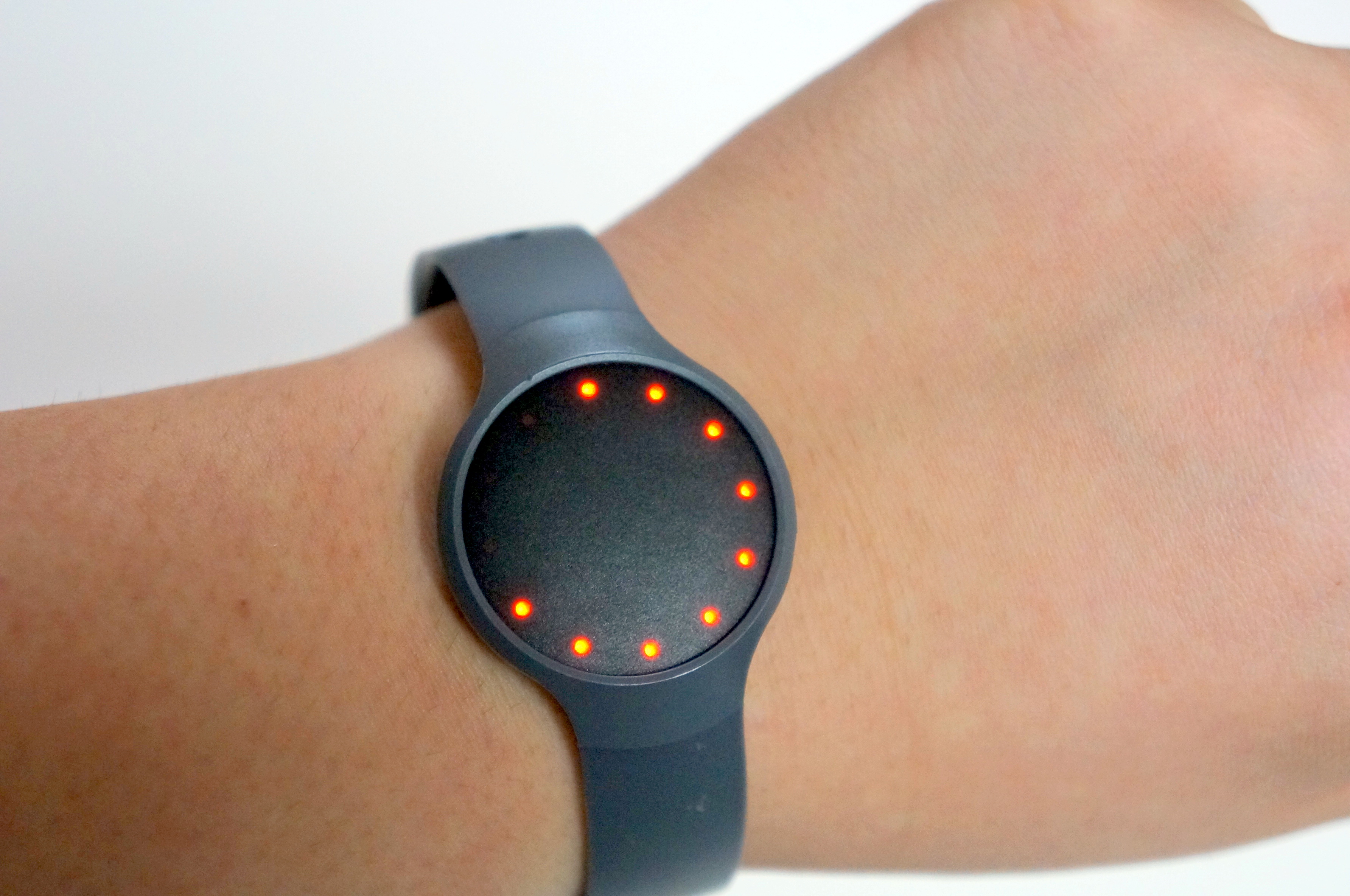 上位モデルのアルミニウム製「Shine」が99.99ドルなのに対し、プラスチック性のFlashはややチープな印象を受けます。ディスプレイは持たず、本体を押すことで、運動量の達成状況や時間をライトで表現するので、時計としては少し使いづらいですね。
