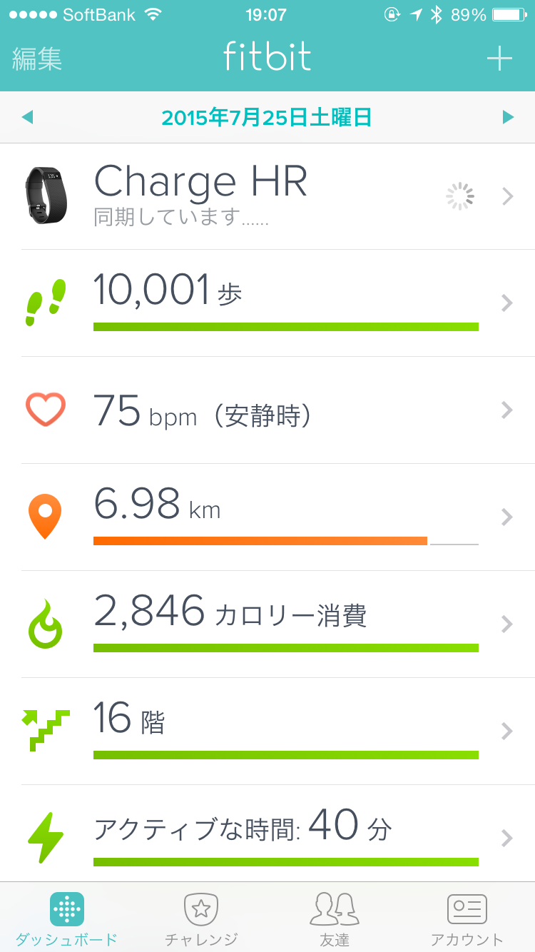 同じ項目の1週間のデータを比較できるので、「昨日はもっと歩いていたのに、今日は少ないな」と反省しやすいですね。