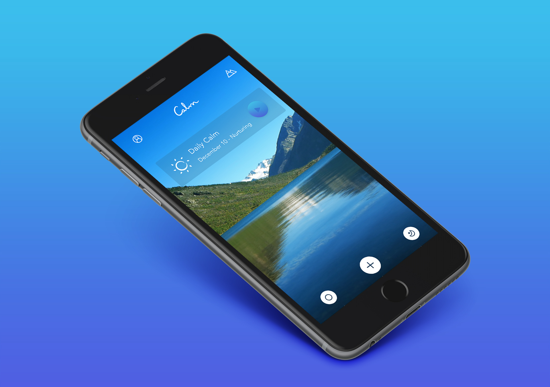 例えば「Calm(コーム)」というアプリは、リラックスに最適な音とビジュアルを再生できるというもの。森や暖炉、雨の音を聴きながら、数分間瞑想します。iPhoneなどの画面に再生させる綺麗な映像を眺めながら、リラックスできるようになっています。就寝前に行うセッションなども備わっています。また、「呼吸」アプリと同じように、深呼吸をサポートする機能もあります。