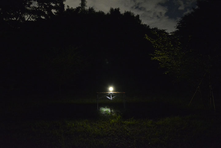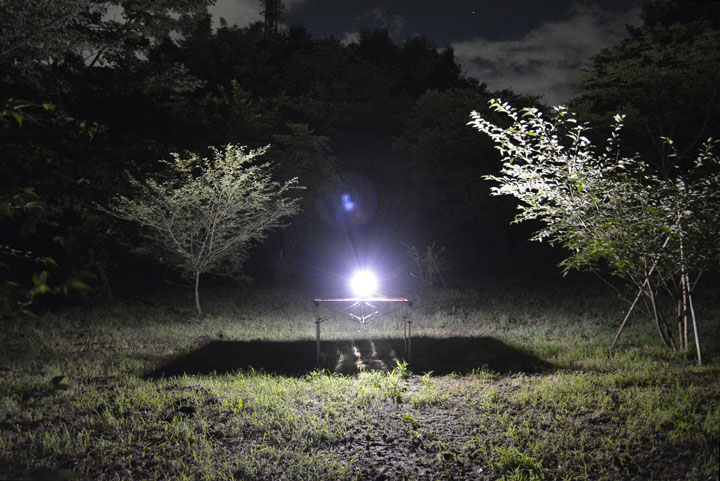 最も明るい白色モードを最大点灯。かなり明るく、さらに白い明かりなので、照らされたところが明瞭に見える