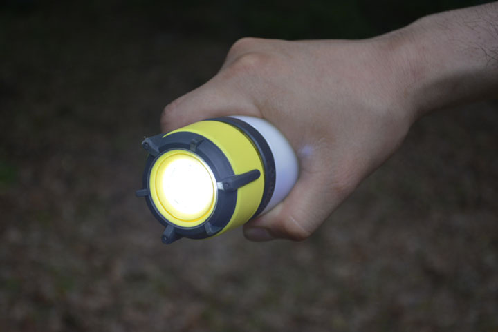 底部分は50ルーメンのフラッシュライトに。テント周りの移動ならこれで十分