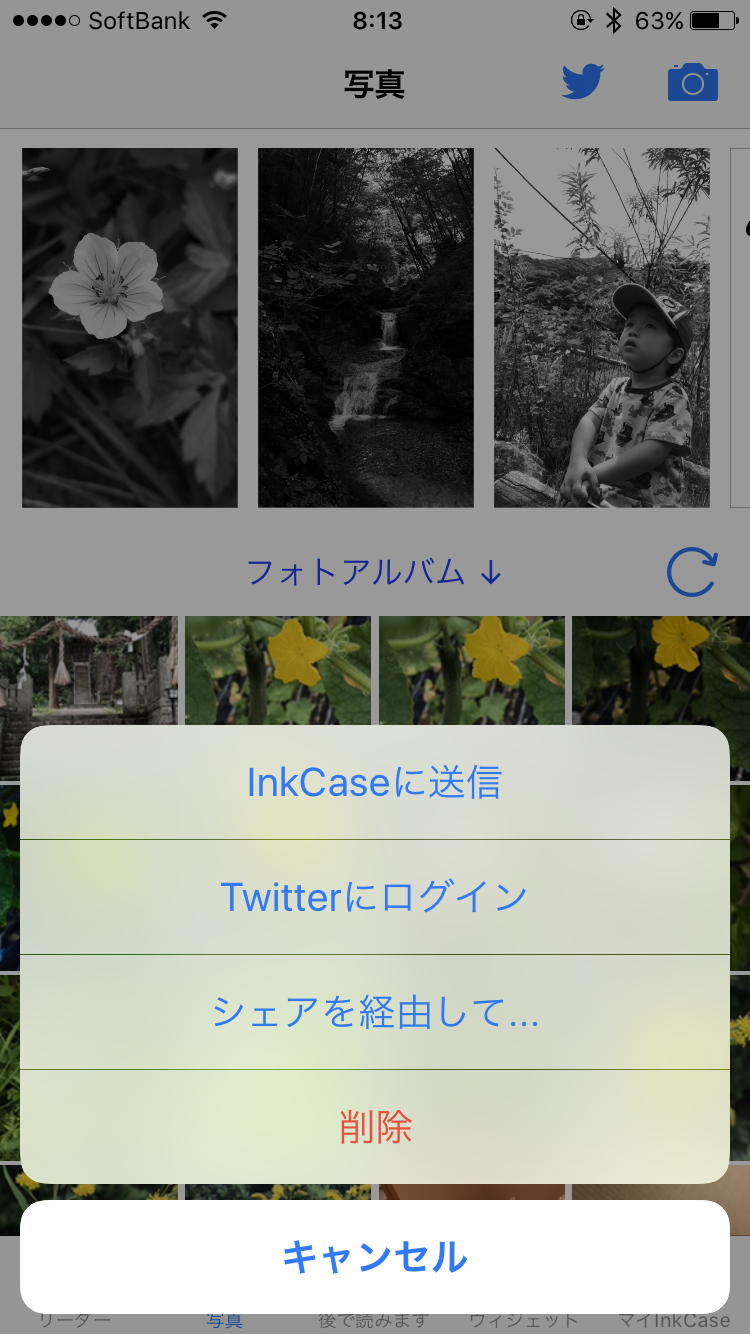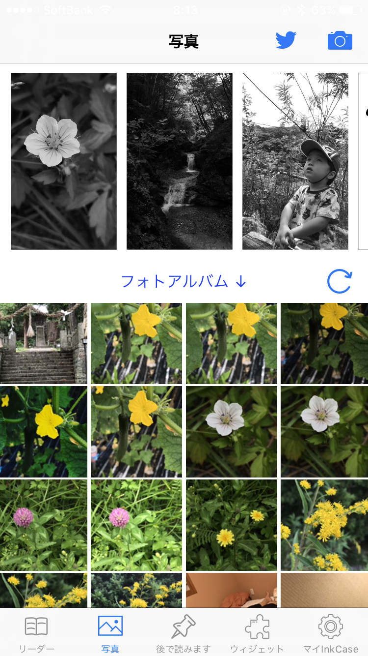 ▲アプリで「写真」をタップし、フォトアルバム(カメラロール)から写真を1枚選びます