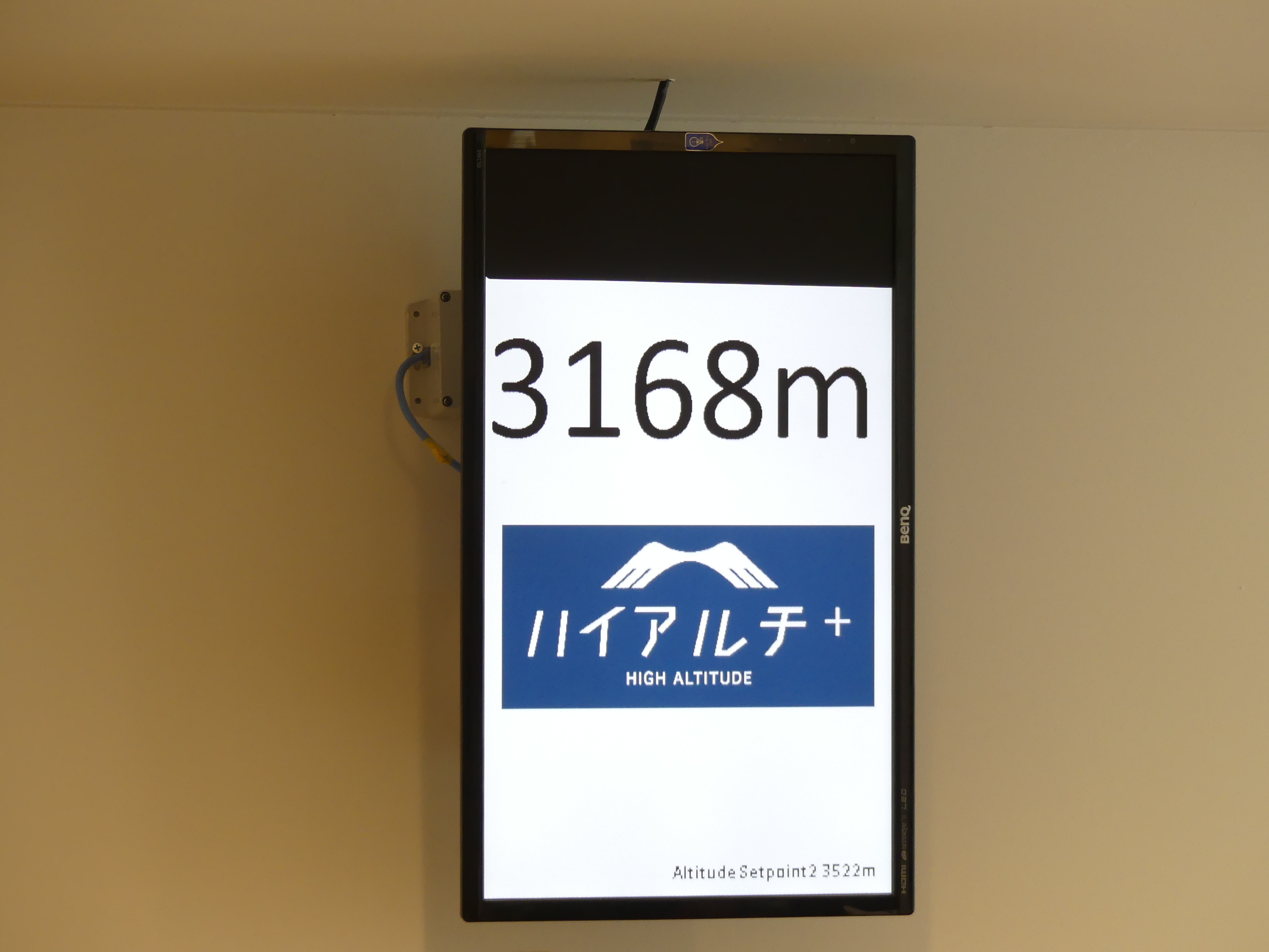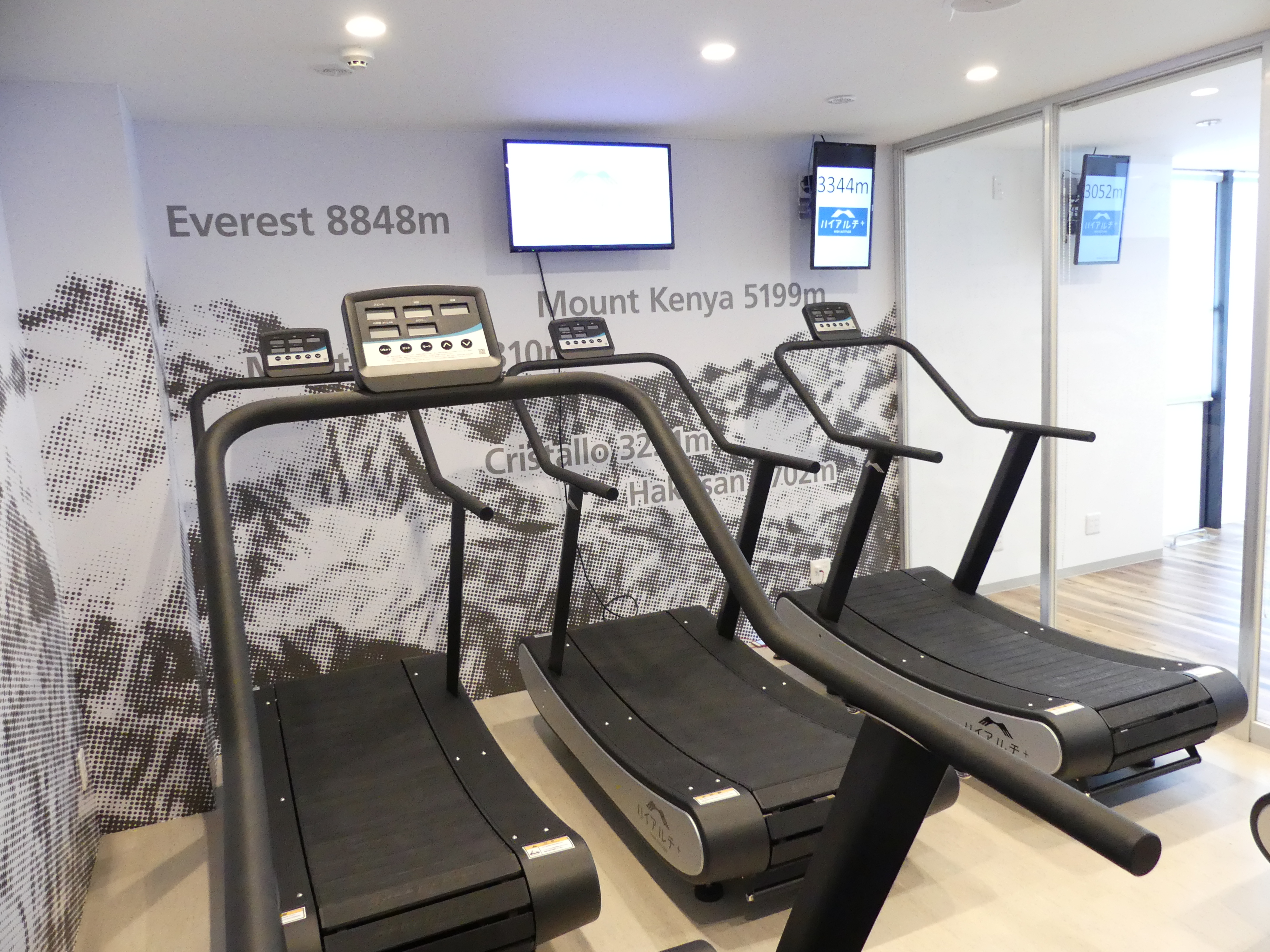 標高約3150m相当の酸素濃度にコントロールされた空間。富士山でいえば8合目くらいです。こちらもプレス向け体験ということで、体感しやすいように普段より高めに設定されています。2000mほどでも、充分に効果があるそうです。