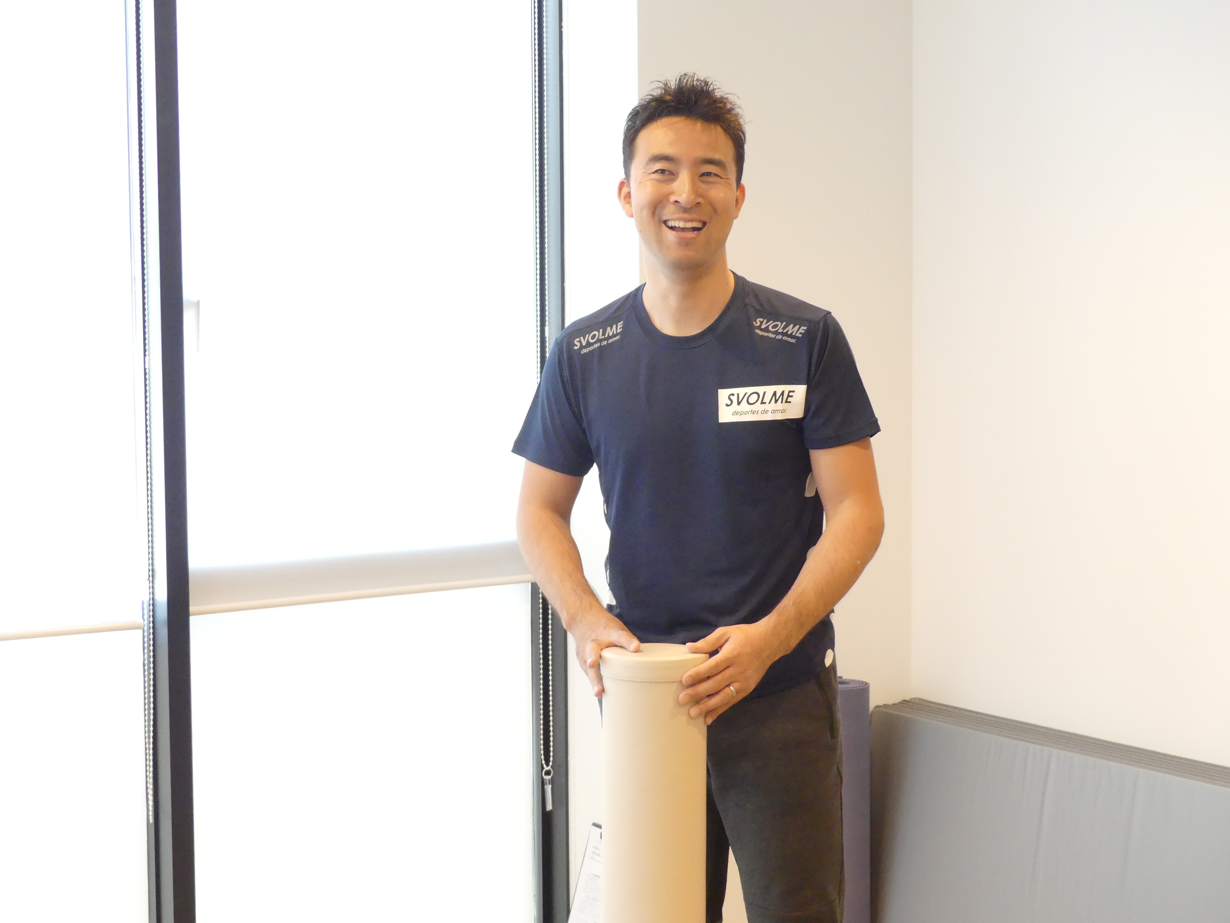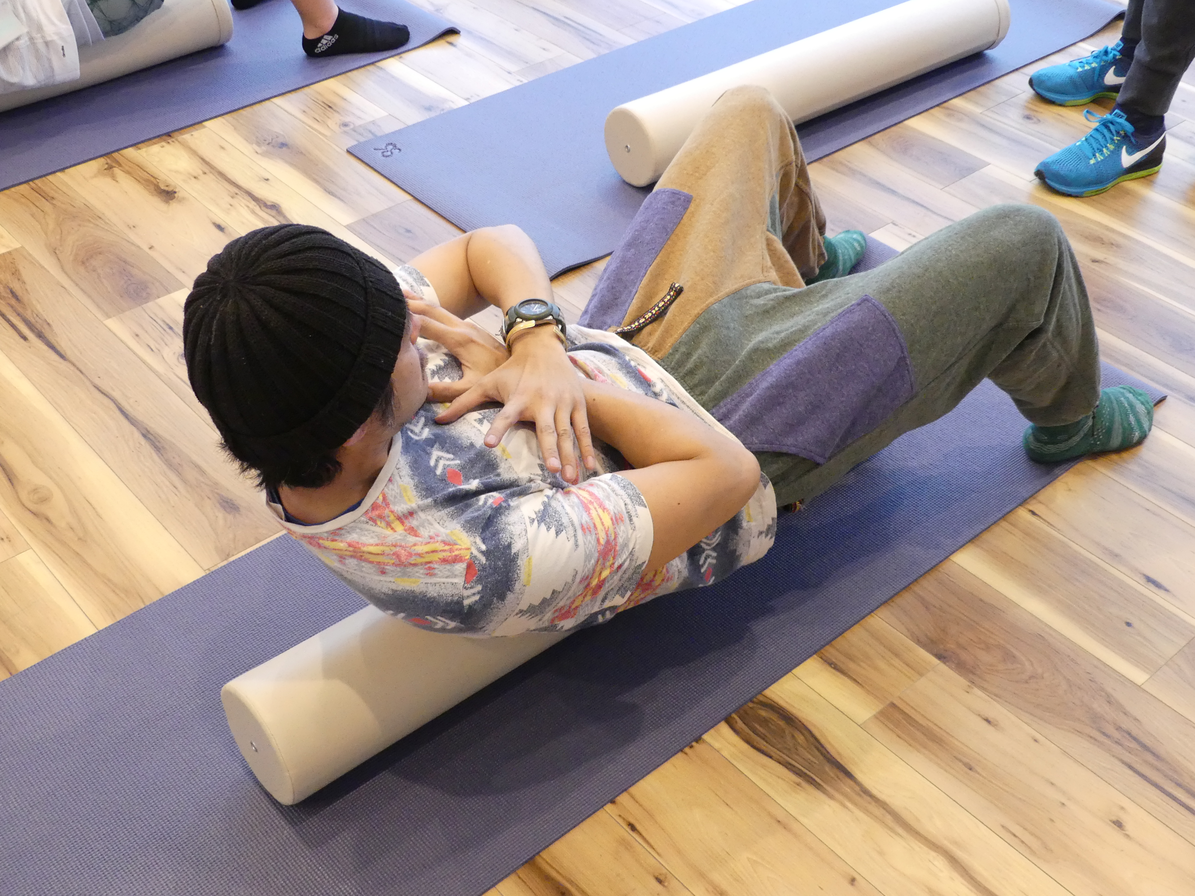 初めはストレッチポールを使ったコアトレーニング。筆者の衰えに衰えた腹筋は悲鳴を上げていますが、高地状態ゆえのキツさは特に感じません。他人の声がわずかばかり遠くに聞こえるような、何とも形容しがたい違和感はありますが、問題なくプログラムをこなせます。