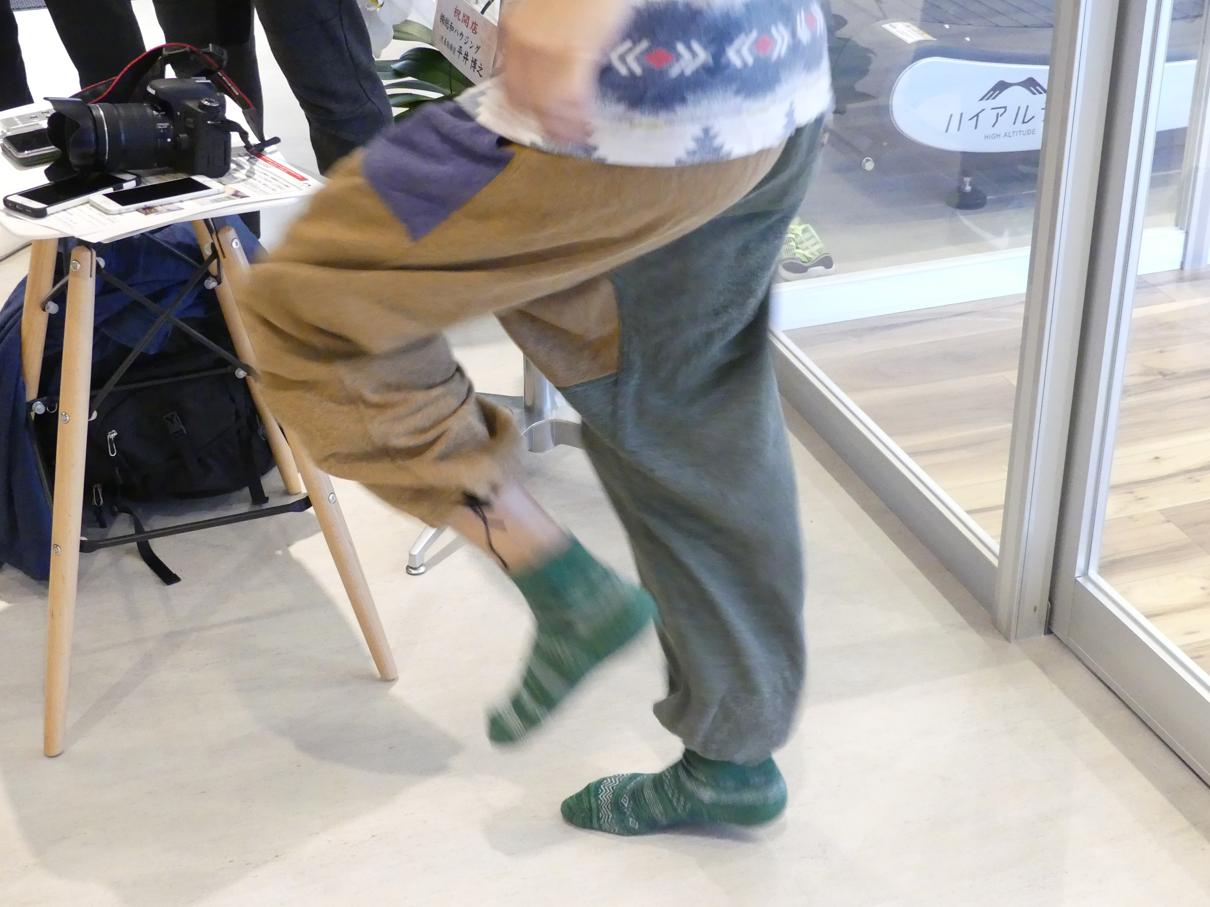 その場でもも上げダッシュ1分。やったことありますか? それなりに手を抜いてもシンドイです。目の前に新田氏がいるし、他の参加者は真剣にやっているので手も抜けません。めっちゃシンドイ。ここで、先程の数値を再計測。