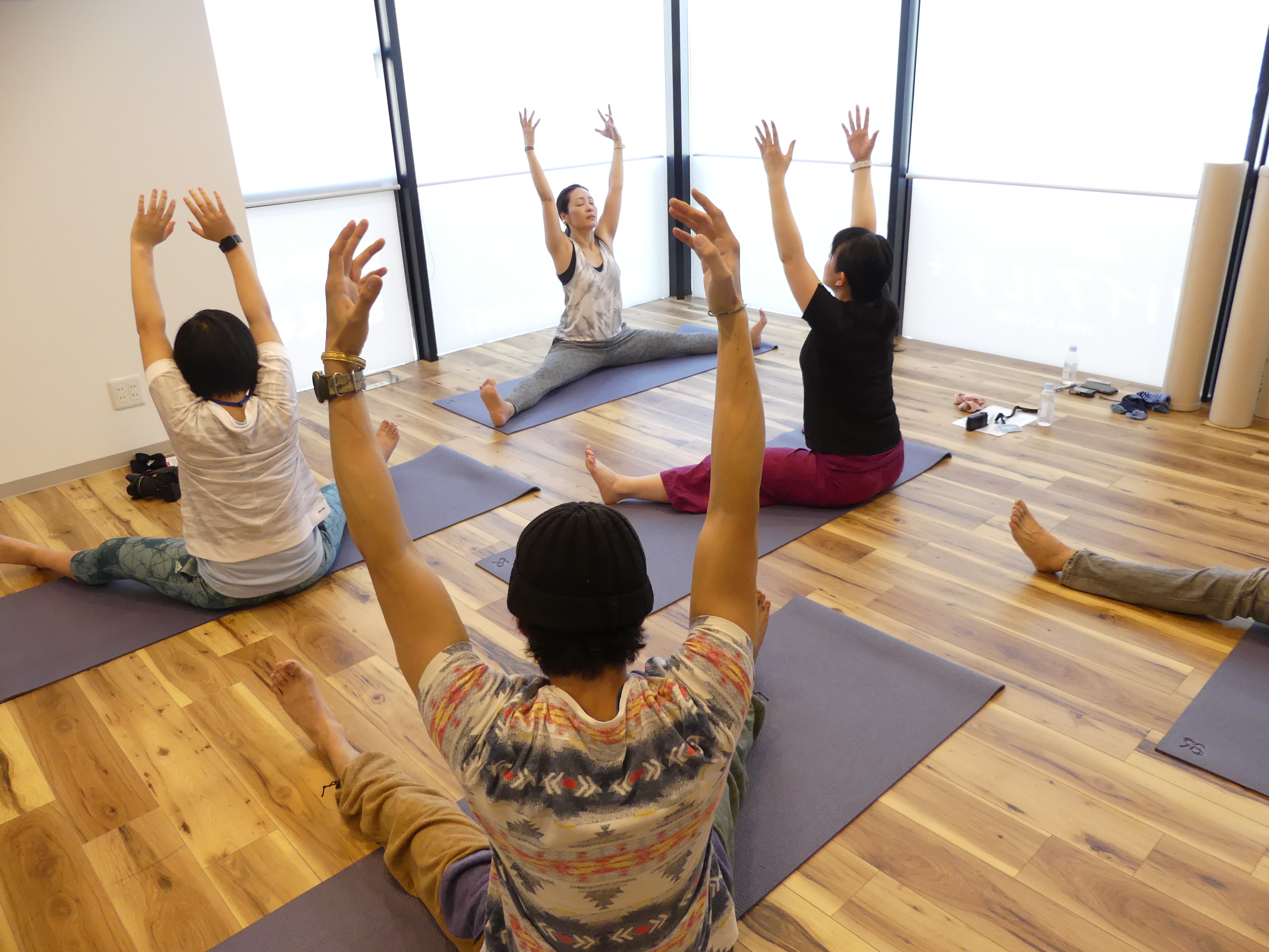 続いてヨガ。深い呼吸で、ゆっくりとカラダを伸ばしていきます。かなり運動量の少ない部類のヨガだと思うのですが、けっこう汗をかいています。激しく動いているわけではないのでキツさはなく、また部屋が暑いということもないのですが、それにしては発汗が多い。どうやら高地状態の影響がジワジワと出ているようです。