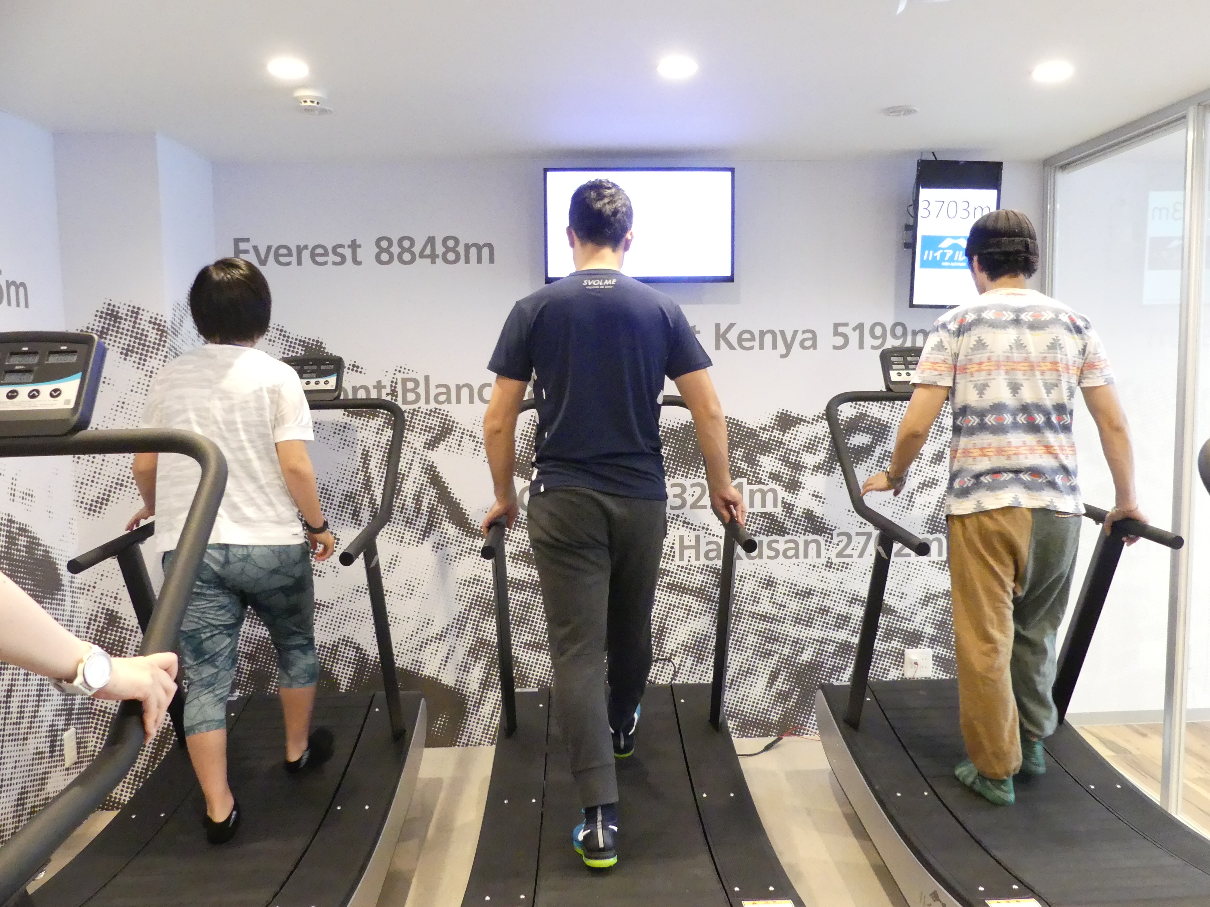 隣の部屋に移動し、自走式ランニングマシンを体験。先ほどの部屋よりもさらに高度が上がり、こちらは3700m前後に相当。富士山の頂上近辺です。