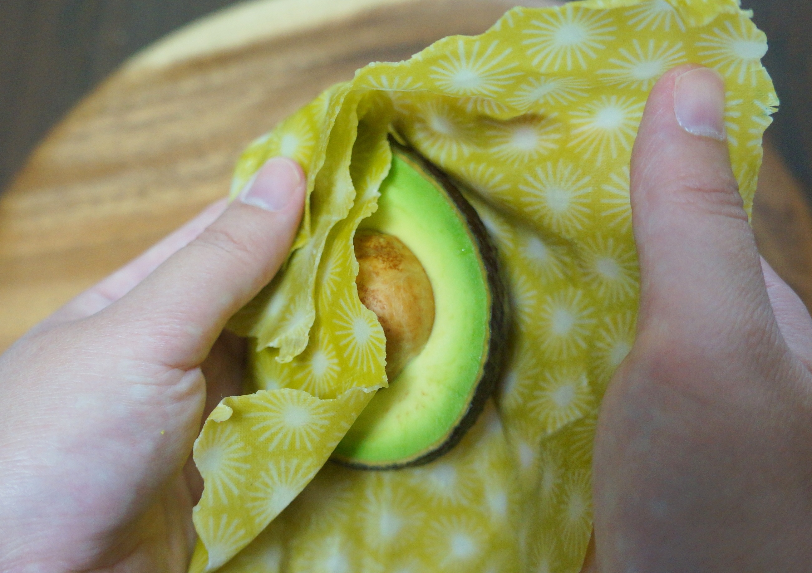 柔らかいものを保存するときは、少しきっちりめに包むと、形状が崩れにくくて良さそうです。冷蔵庫に保存するとミツロウの効果で固くなり、形状のキープに役立ちます。