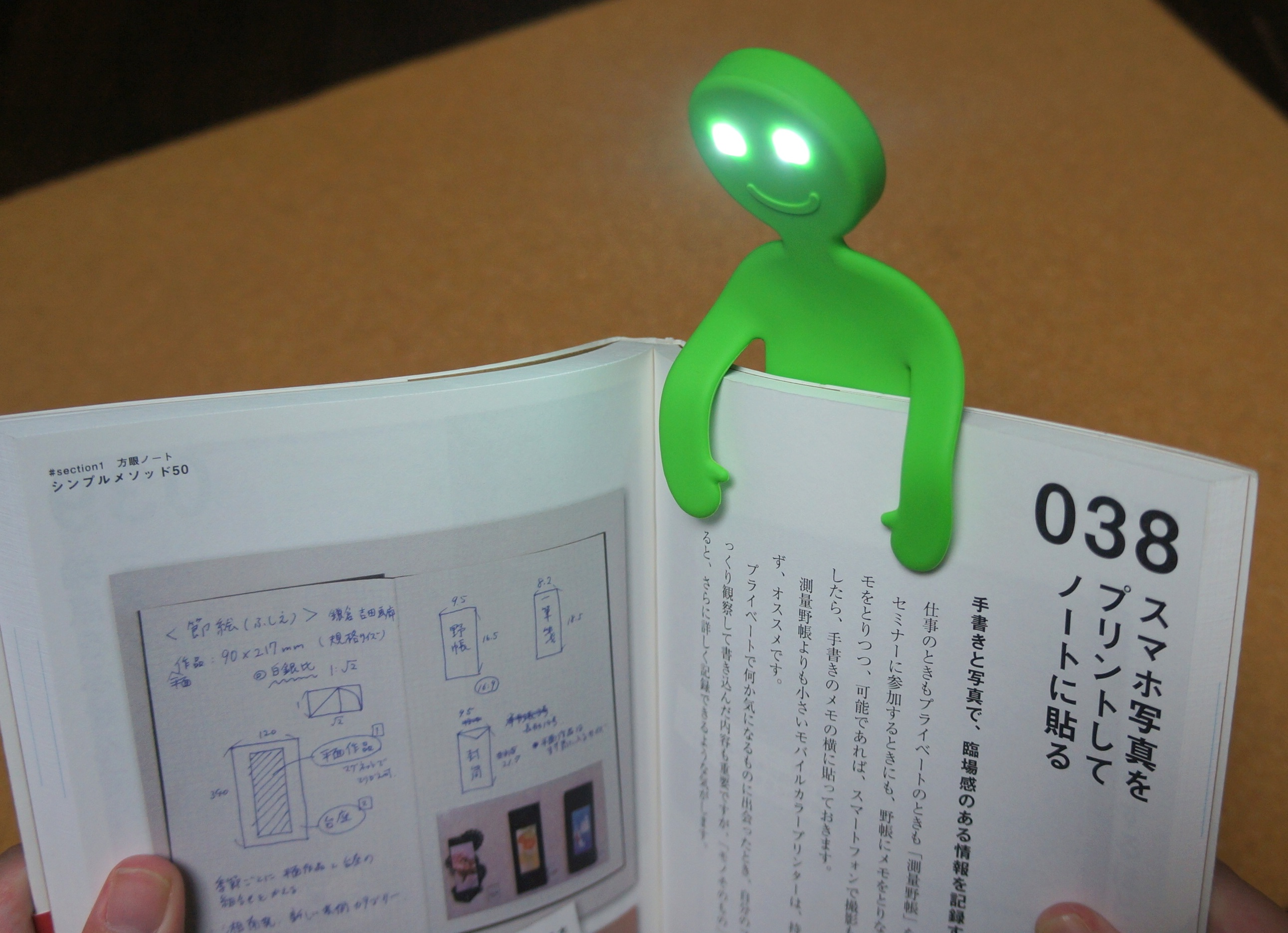 「ライトマン」で注目したいのが、自由な形に折り曲げ固定できるという特徴。つまり、これを上手に折り曲げて本に挿し込めば…