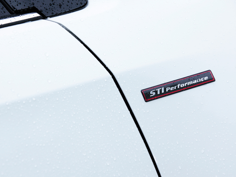 STIが提案する空力の良さと、ハンドリングのしっかり感を具体化した証として、ボディサイトとリアには“STI performance”のエンブレムが付けられます。ノーズ部分の最低地上高が約50mm下がるほかは、クルマ自体の使い勝手の良さに変わりはありません。