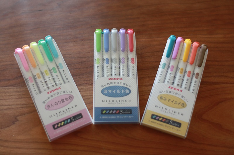 「マーキングペン アッシュカラー」はピンク、イエロー、グリーン、ブルー、グレーの5本組で、「マイルドライナー」と対応させるなら、マイルドレッド、マイルドゴールド、マイルドグリーン、マイルドダークブルー、マイルドグレーが近い感じです。また、「マーキングペン パステルカラー」という5本組もあり、こちらはマイルドライナーの「ほんのり蛍光色」と似たカラーです。