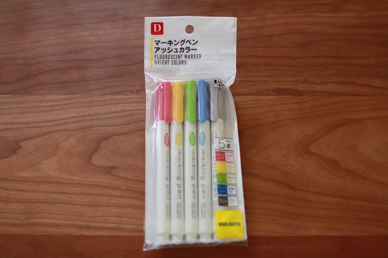 ▲「マーキングペン アッシュカラー」5本入りで108円