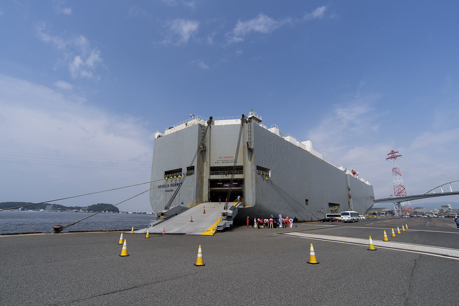 さて、車両の積み込み方法ですが、ブラジリアハイウェイをはじめ、自動車メーカーが新車輸送に使う運搬船では“RO-RO(Roll-on/Roll-off)方式”、つまり、車両甲板への積み下ろしを自走で行うのが一般的で、こうした点から、自動車運搬船は“RO-RO船(ローロー船)”とも呼ばれています。ちなみに、コンテナ船などではクレーンやリフトを使用して貨物を積み下ろす“LO-LO(Lift-on/Lift-off)方式”が採られています。かつては、クルマもLO-LO方式で積もり下ろししていましたが、荷役作業に時間がかかることなどから、新車輸送では見られなくなりました。