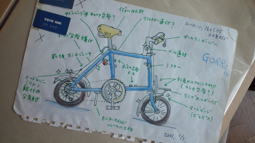 こうして、ローバーを作ってから4年後の2001年2月、再びアルプスに出向き、制作を相談した。アルプスでは20インチのミニベロは制作していたが、16インチのミニは初めてだった。店主、萩原氏の指示のもと、若干の仕様変更をして制作は開始され、同年7月に完成した。