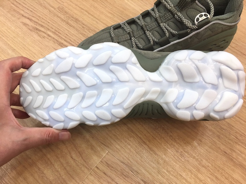 ソールには”エアポッド”を搭載。足が地面に接するたびに空気が圧縮され、エアポッド内の空気が異なるゾーンの間へと押し込まれます。それによって、優れた安定性とクッション性を生み出しています。