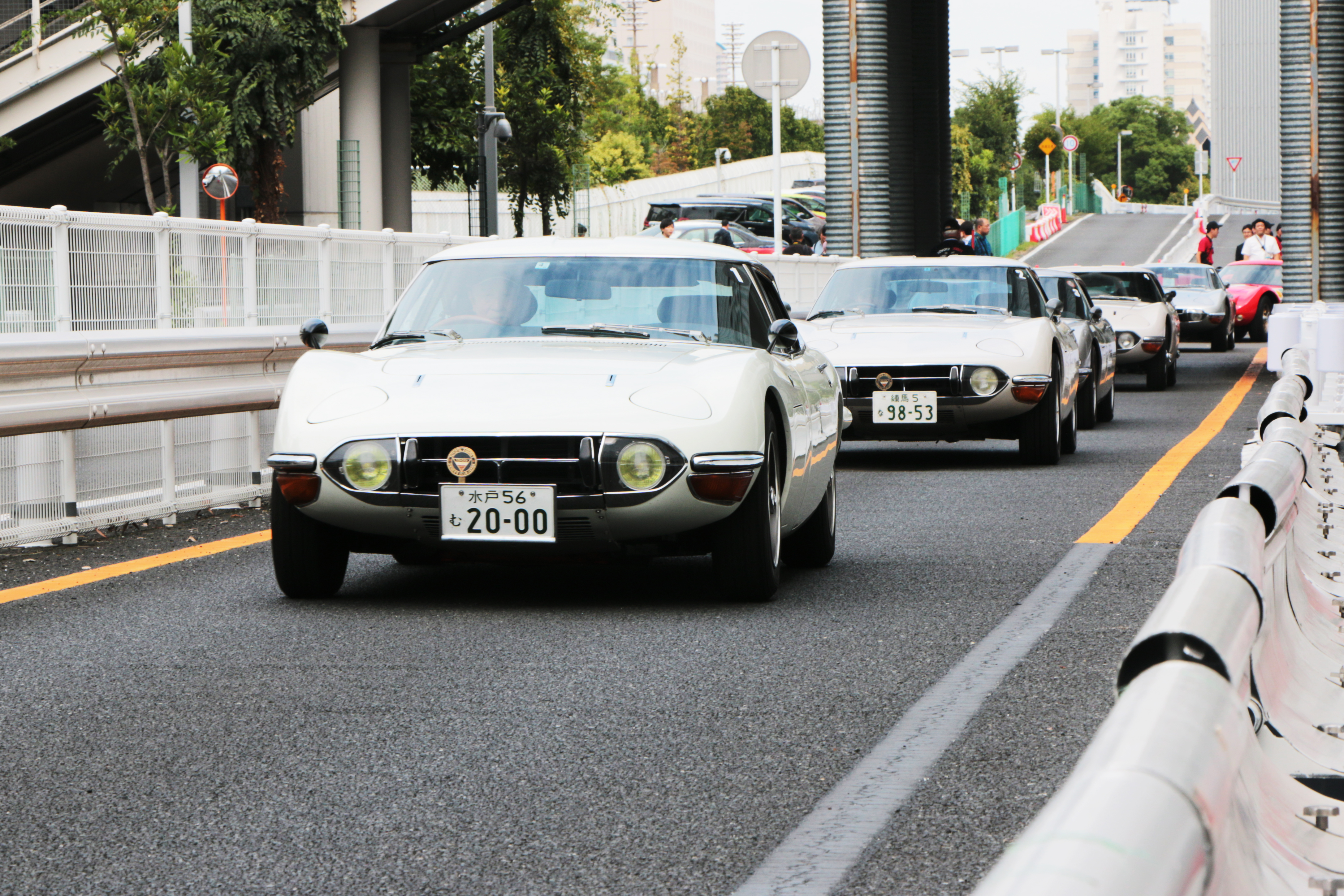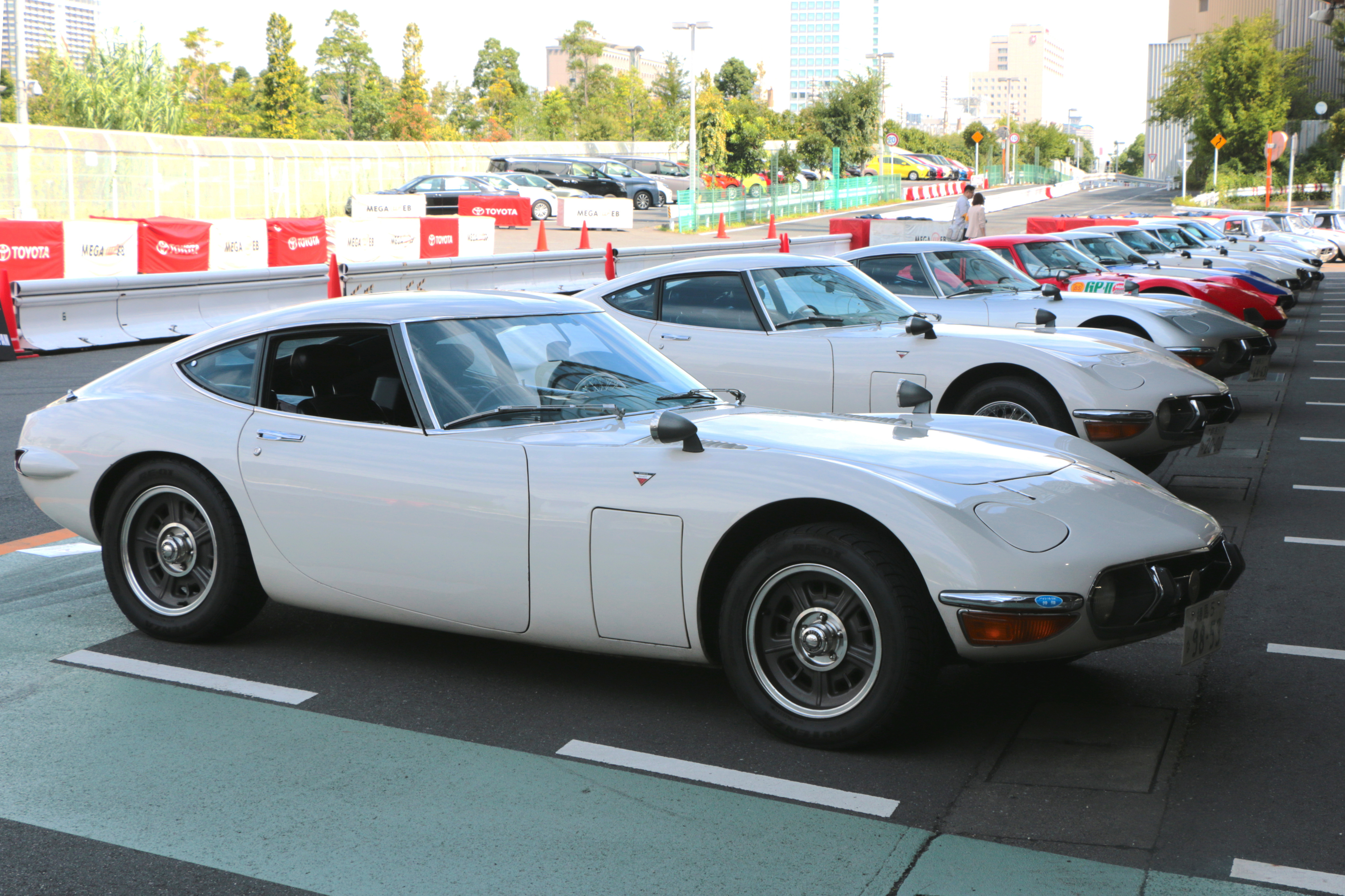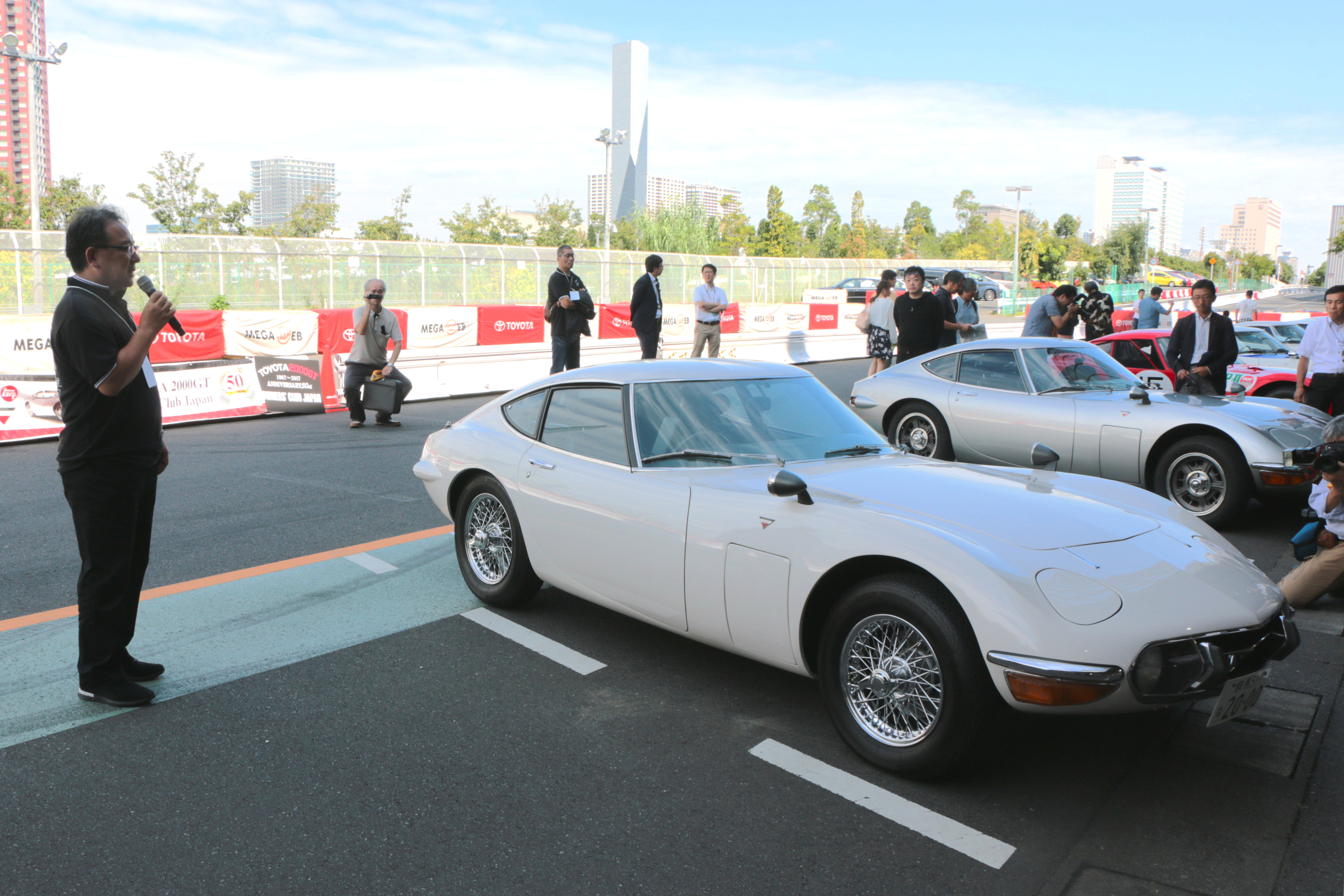 続いては、MEGA WEBのライドワンコースを使っての全車でのパレードラン。約20台の2000GTが吐き出すエキゾーストノートは迫力満点で、多くの来場者の注目を集めていました。走っているのを見掛けることさえ稀な2000GT。これだけ多くのクルマが連なって走るシーンを見られただけでも、貴重な体験だといえるでしょう。