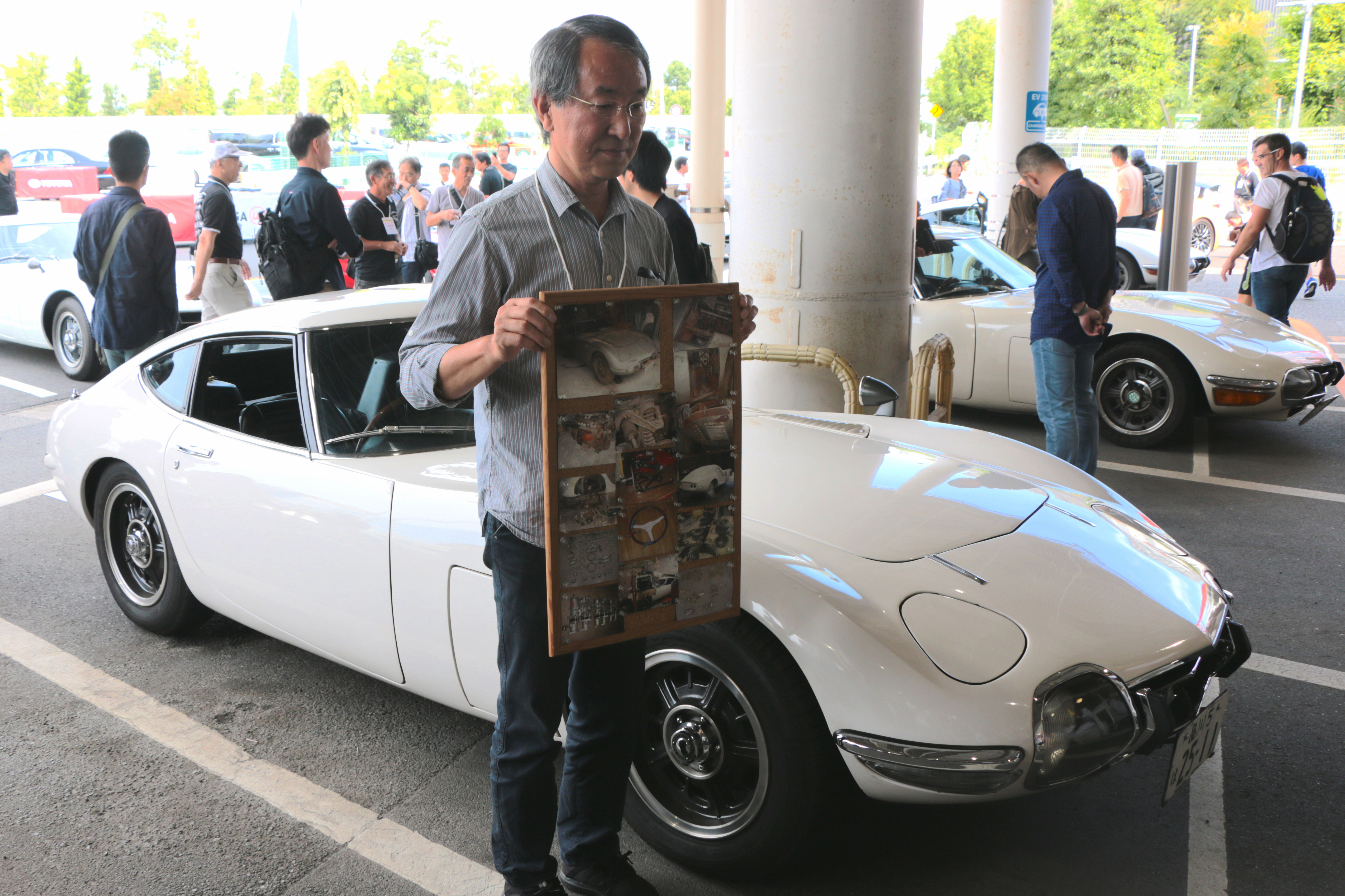 今回は、トヨタ2000GTオーナーズクラブから16台、それ以外に3台が駆け付けました。イベントでは、16台のオーナーがそれぞれ自身のクルマへの思い入れや自慢のポイントなどを紹介する場面も。エンジンのオーバーホールを機にエンジンルームをキレイに仕上げ「それが見えやすいように」とボンネットの裏側にミラーを設置したというオーナーや、自らの手でレストアを行った人、非常に希少な純正クーラーが付いているのを自慢するオーナーまで、それぞれのクルマにそれぞれのエピソードがあることが伝わってきます。
