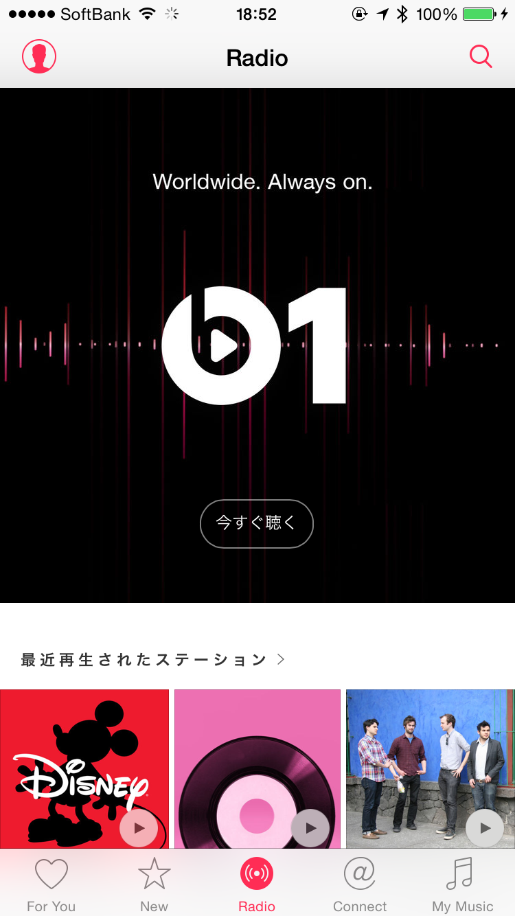 24 時間放送で発信するラジオ「Beats 1」や、DJ がキュレーションを手がけるオンデマンドのステーションを楽しめる「Radio」機能は、目玉機能のひとつです。