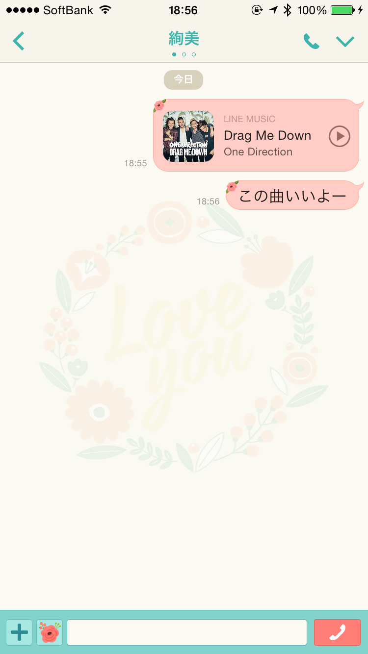 LINE MUSICの最大のポイントは、LINEでの「シェア」機能。たとえば、元気のない友だちに「この曲聴いてがんばって!」と伝えたり、家族に「いつもありがとう」という気持ちを音楽で伝えたりできます。