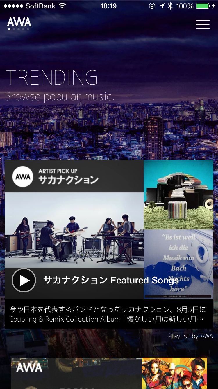AWAは現在数百万曲を配信しており、2015年末には約500万曲、2016年末には1000万曲の配信を予定しています。現状は、Apple Musicとほぼ同等ですが、ソニー系のアーティストの楽曲を配信しているので、邦楽には強いという印象です。
