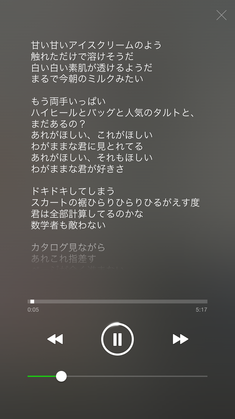 本サービスでは歌詞が見られるというのが、何気に気に入っています。ただし、対応していない楽曲もあります。