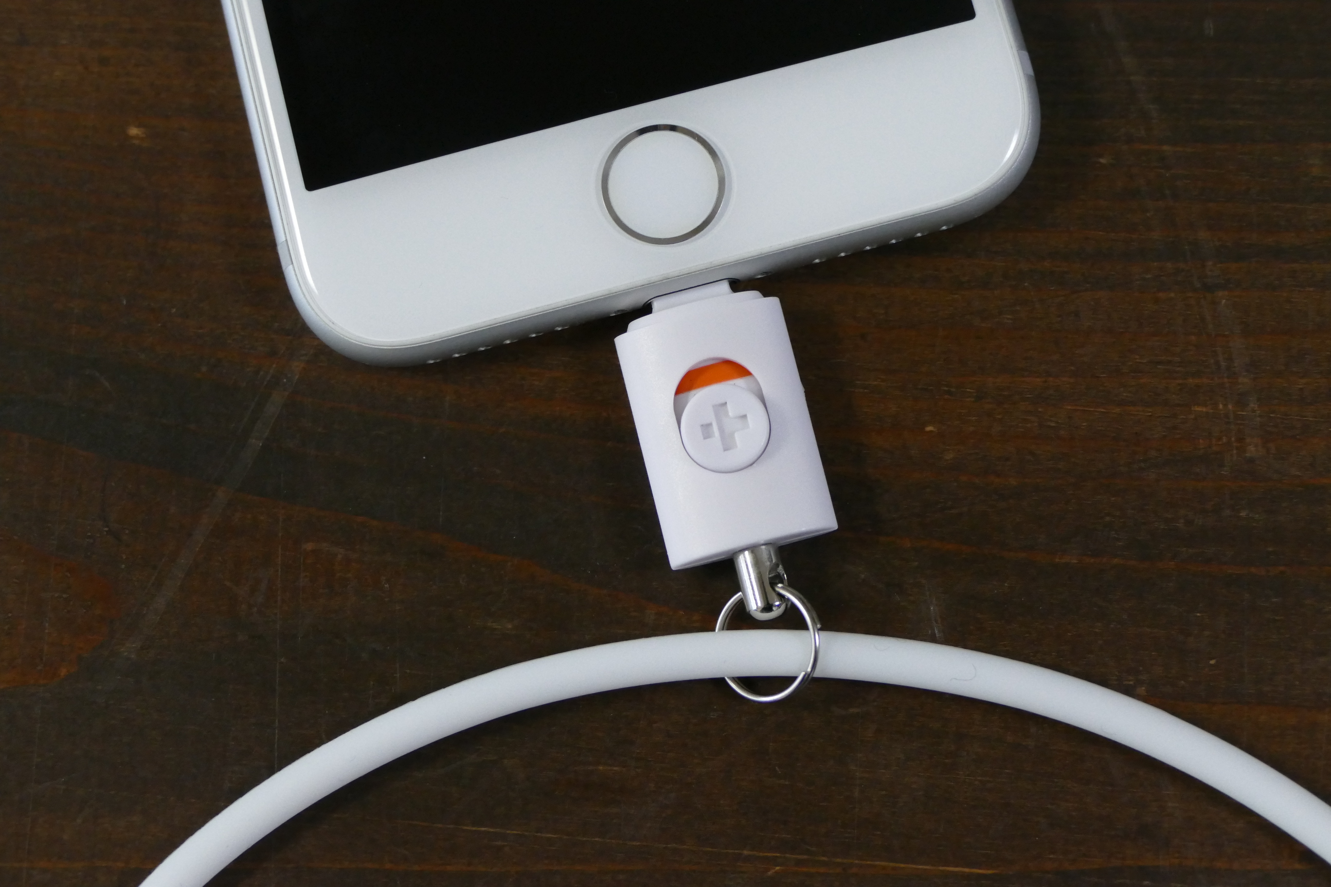 Lightningコネクタに端子を挿入しただけでは、ちょっとした力で抜けてしまいます。毎日充電器を使っている人ならわかりますよね。
