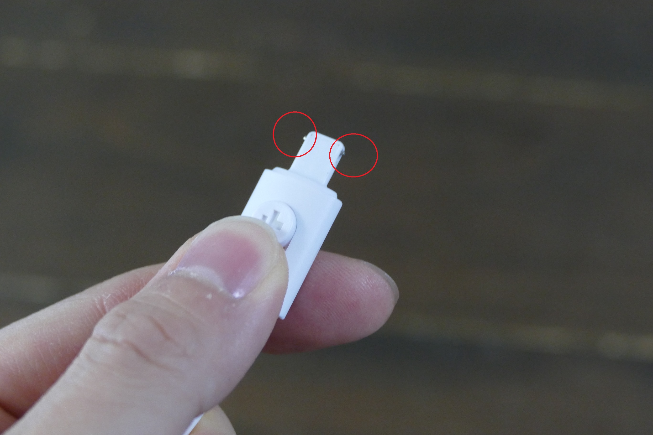 ▲スイッチをカチッと切り替える。先端から小さな金具が出てくる(上記写真だと、赤丸で囲った部分)。なお、取り外すときには、かならずロックを解除してから行おう