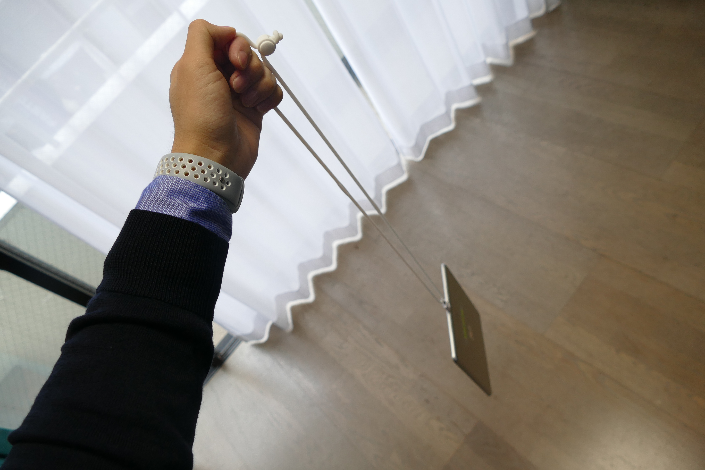 ケーブルはビヨンビヨンと伸びます。強度もそこそこあるので、iPadくらいは固定できるでしょう。もちろん何かの拍子でケーブルが切れたり、コネクタが外れたりする可能性はゼロとは言い切れませんので、使用は自己責任でお願いします。