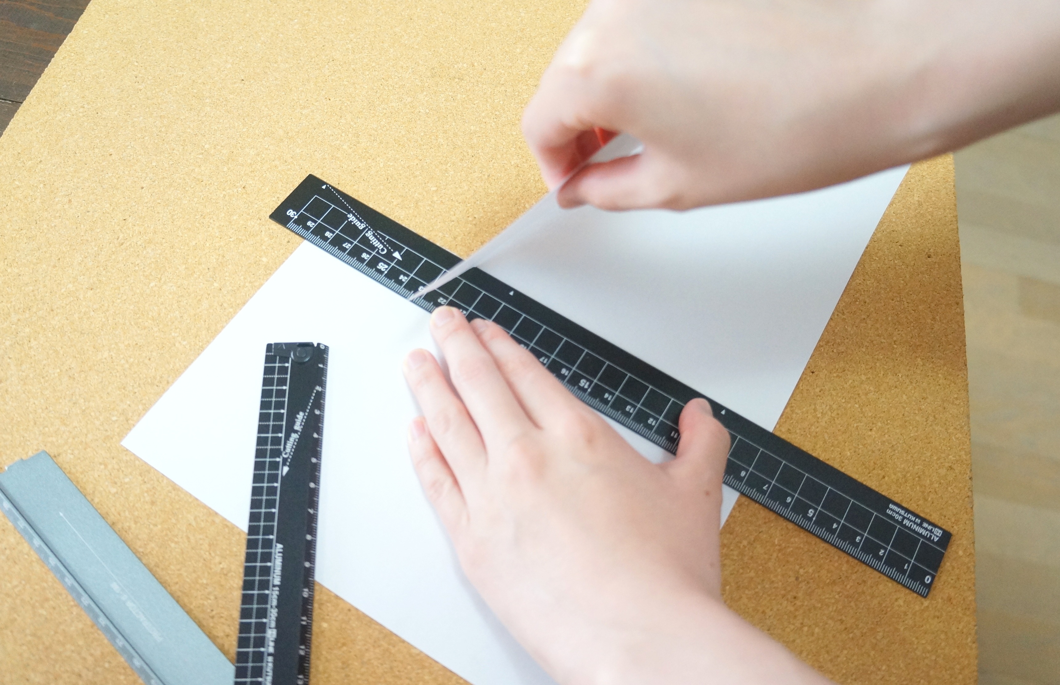 ワイルドな切り取りとは、ずばり定規で紙を切る方法。誰でも一度は試したことがあると思います。けれど、きれいに切り取るには結構技術がいりますよね。でもクツワの「アルミ定規」なら誰でも簡単に、ズバッと紙を切り取れます。