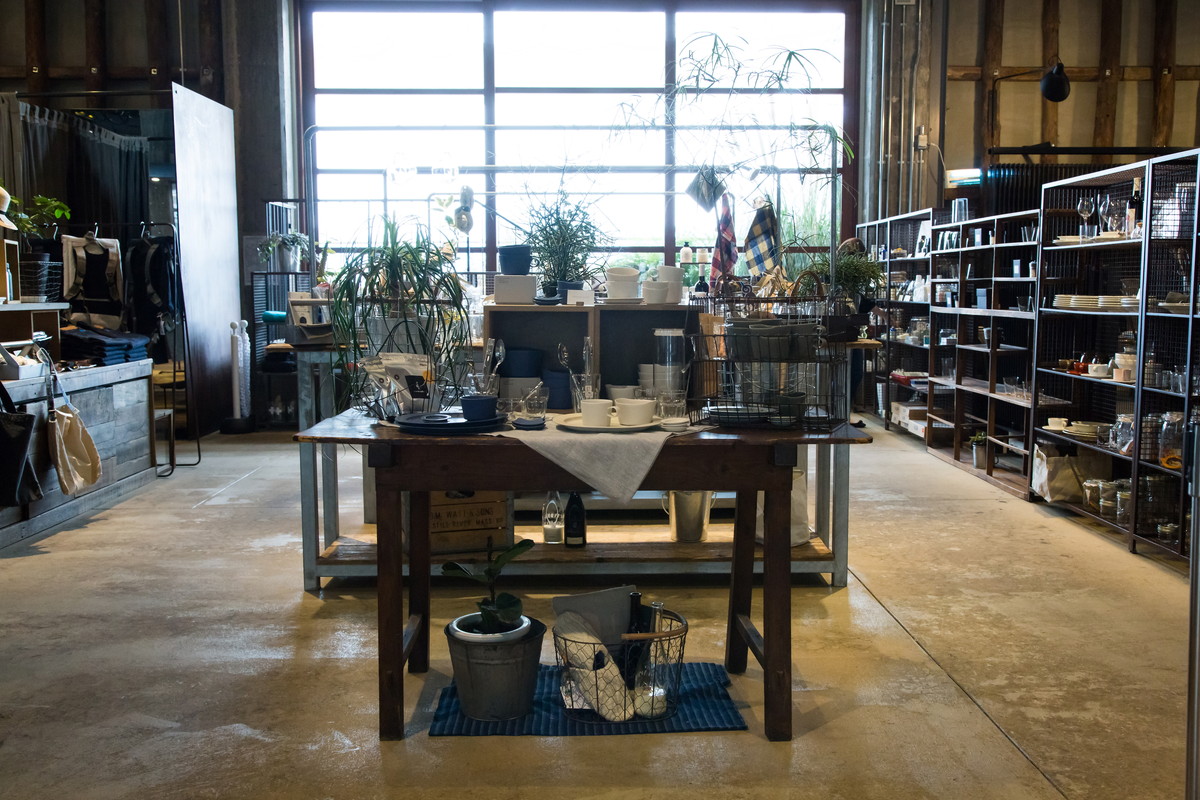 ▲落ち着いた色合いのアパレルや小物類など、生活雑貨が並ぶライフスタイルショップ