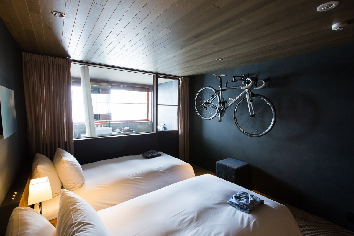 そして、遠隔地からONOMICHI U2を訪れるならば、ぜひ予約してほしいのが「CYCLE HOTEL」。なんと愛車を室内に持ち込んでの宿泊もOK! 自宅でもなかなか難しい、愛車を眺めながら眠るという経験ができます。
