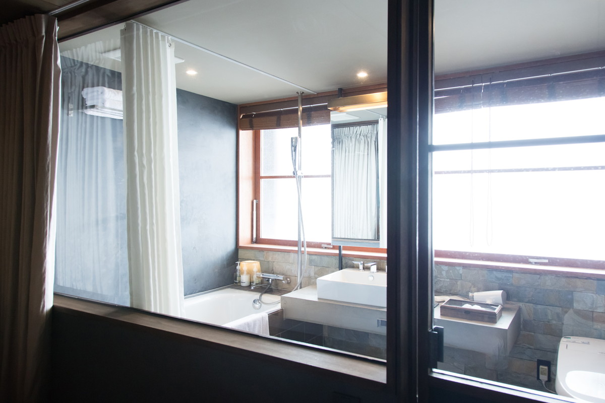 ▲ガラス張りのバスルームから自転車を愛でることも…