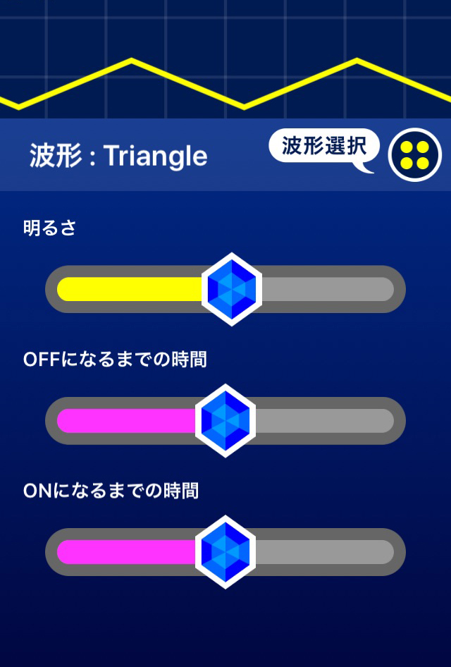 ▲5秒後に付けたり、5秒後に消したりできるなどタイマーを使ったON/ OFFも可能。アプリは音量で明滅の強弱をコントロールできる機能もあり、音楽と連動して点滅させるといった演出も可能だ