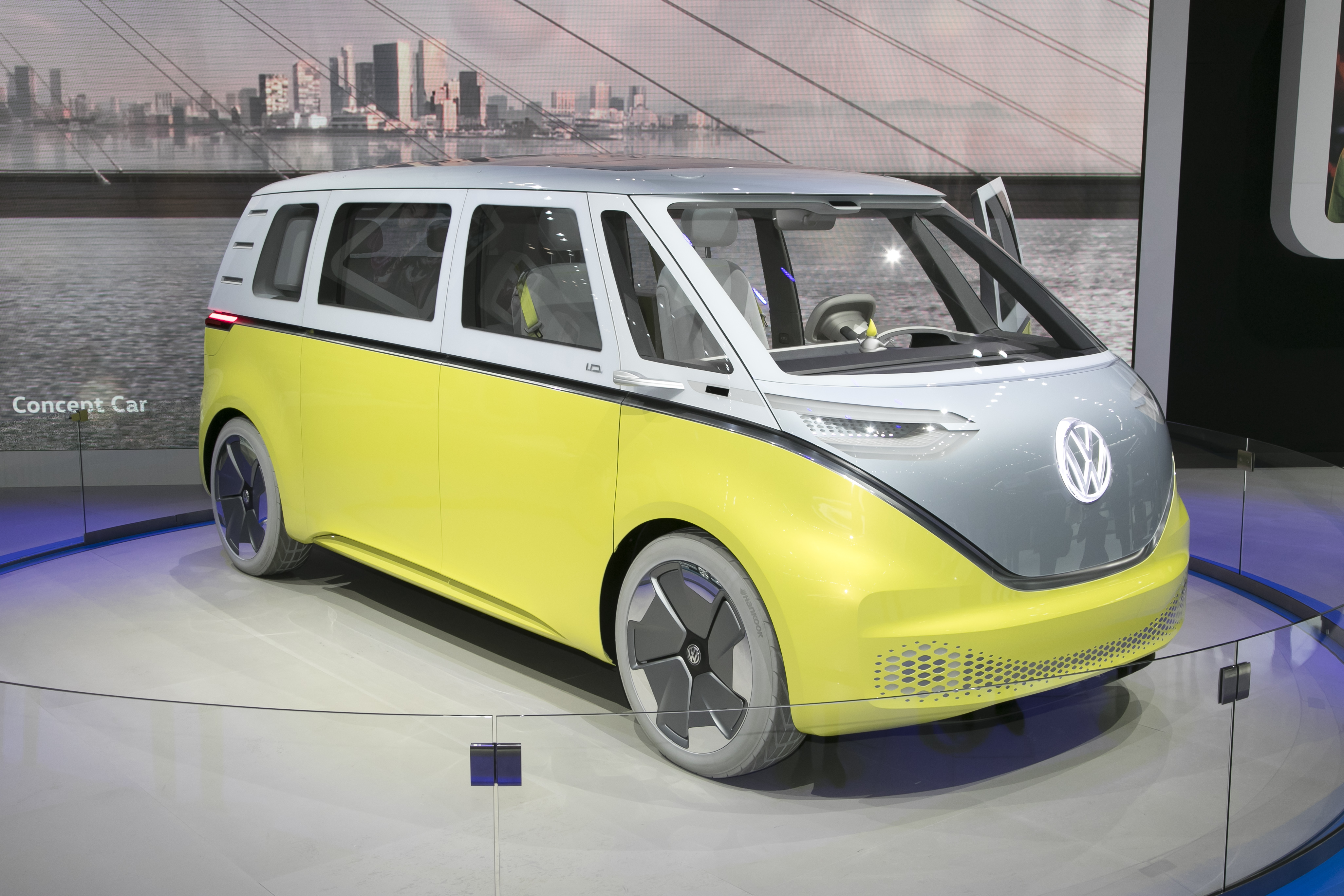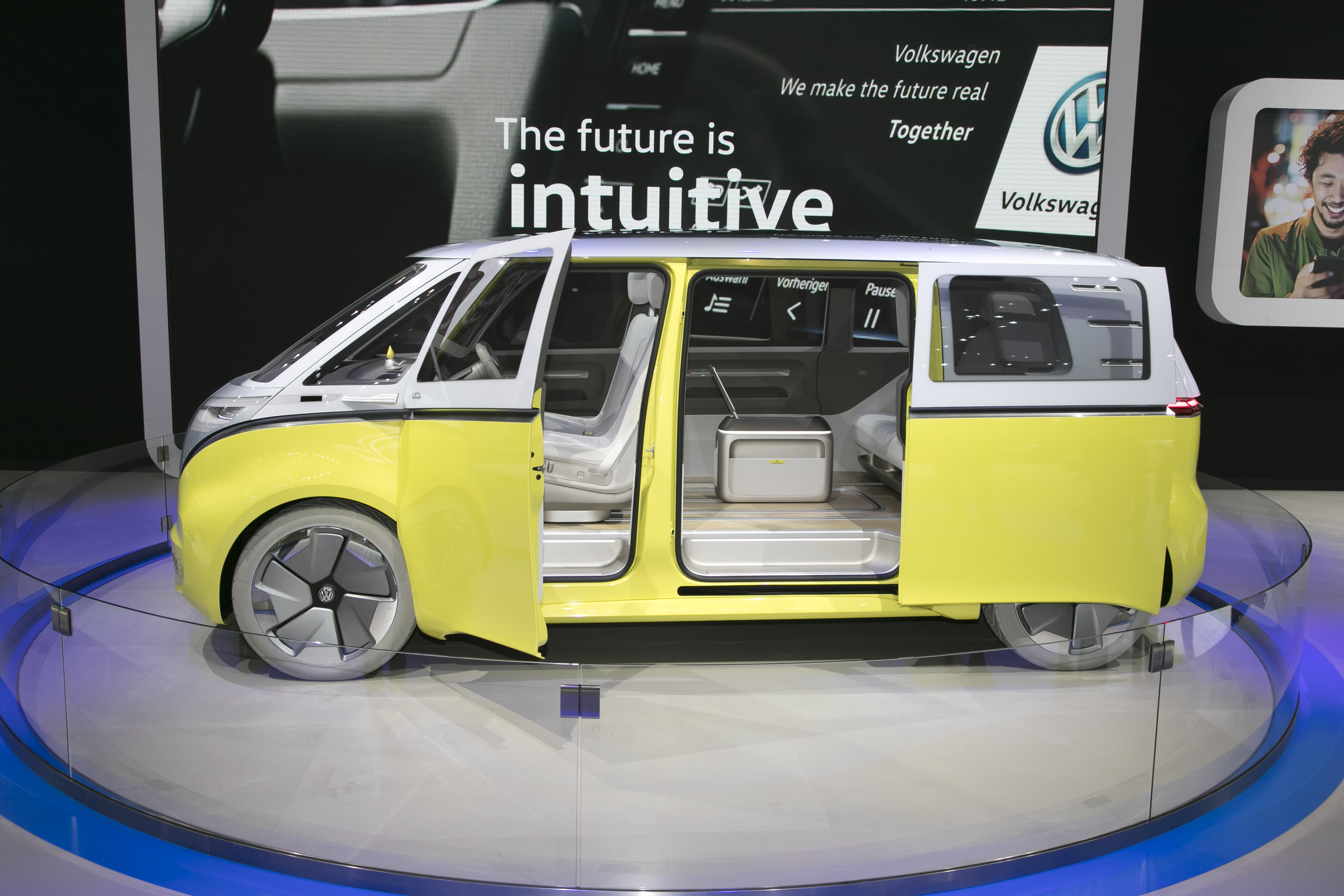 フォルクスワーゲンブースにおける最大のトピックは、往年の名車「ワーゲンバス」を現代流に再解釈したコンセプトカー。2020年から実用的なEVの市場投入を予定している同社ですが、I.D.BUZZはEVの多目的バンを表現しているとのこと。