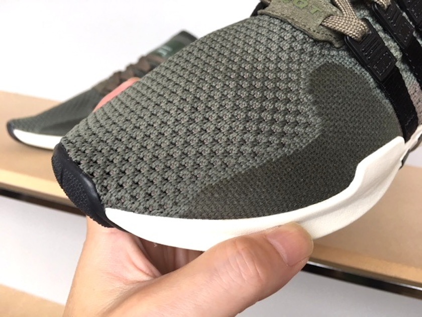 アッパーはフィット感と通気性に優れたadidasプライムニットを採用。サイド部分はピッチの細やかなニットに切替えられていて、デザインにメリハリを効かせています。